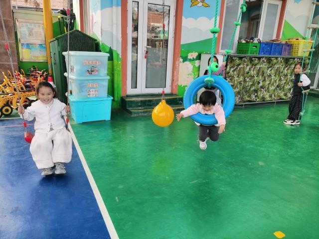 碰鸡蛋、荡秋千是清明节的传统习俗,趣味碰蛋环节热闹非凡,孩子们小心翼翼地捧着自己精心挑选的鸡蛋,与小伙伴两两对决,清脆的碰撞声、欢快的笑声此起彼伏,孩子们在小小的碰蛋游戏感受传统民俗的乐趣。创意秋千,荡起欢乐,沐浴春风,感受美好。传统秋千、轮胎秋千、球形秋千、爬梯秋千……孩子们在轻摇慢荡中感受春日的欢动与惬意。