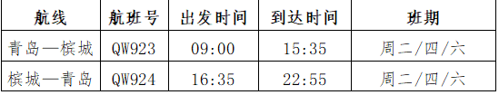 根据航班计划,青岛至槟城航线(航班号QW923)每周二、周四、周六9:00从青岛机场起飞,15:35抵达槟城国际机场;返程航班(航班号QW924)于16:35从槟城国际机场起飞,22:55抵达青岛机场,单程飞行时间约6.5小时。