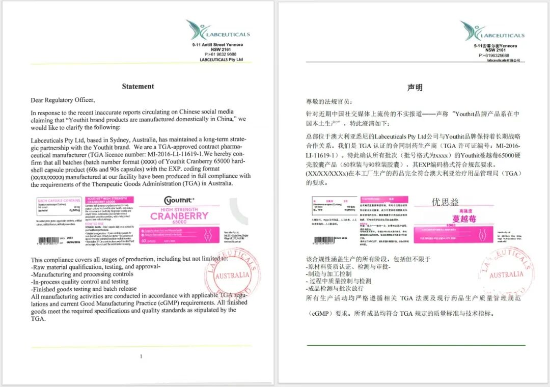 (地址:新南威尔士州耶诺拉市安蒂尔街9-11号,邮编2161,澳大利亚TGA许可证号:MI-2016-L/-11619-1)