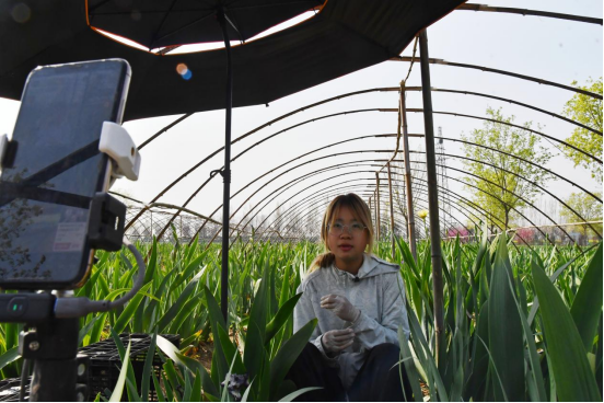 春日正浓,花开芬香。在山东省鄄城县郑营镇汇通园艺种植基地里,绿叶和花朵相衬,工人们在花圃各处忙碌着。“我们这里的花是一株一品,每一株花都不一样,大家可以看看直播间里的图片,相中哪个买哪个。”在一个大棚花圃中,主播高冉正在直播,介绍基地的德国鸢尾花。