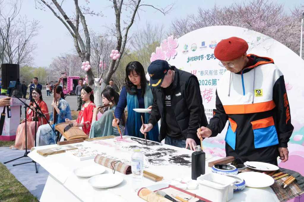 开幕现场,国风雅韵与丹青妙笔相映成趣,尽显画美达尼片区的艺术底蕴与春日浪漫。芙蓉弦歌国风乐团与画美达尼艺术家联盟联袂演绎的《樱韵满楼》,弦乐悠扬勾勒出樱花漫舞的春日盛景;艺术家现场挥毫泼墨,以丹青绘春色,让现场游客沉浸式感受“艺术+乡村+花海”的独特魅力。