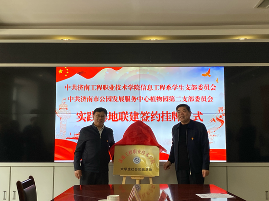 为深入践行绿色发展理念,提升党支部建设,深化校地合作协同育人机制,3月27日下午,济南工程职业技术学院信息工程系学生党支部与济南市公园发展服务中心植物园第二党支部,开展实践基地联建签约暨挂牌仪式。学院党委委员、纪委书记郭洪钢出席签约活动,签约仪式由植物园工作部部长、党总支书记赵西连主持。