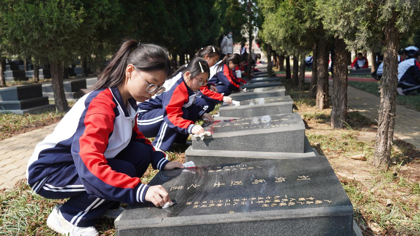 活动中,大家通过敬献花篮、瞻仰纪念碑、擦拭墓碑等方式,深切表达对英烈的崇敬与追思。在革命烈士事迹陈列馆中,陈列的史料无声诉说着革命先辈浴血奋战的壮烈往事,让那段峥嵘岁月从书本中走出,变得触手可及、感同身受。在烈士墓区,大家俯身于墓碑前,轻拭浮尘,以表追思。