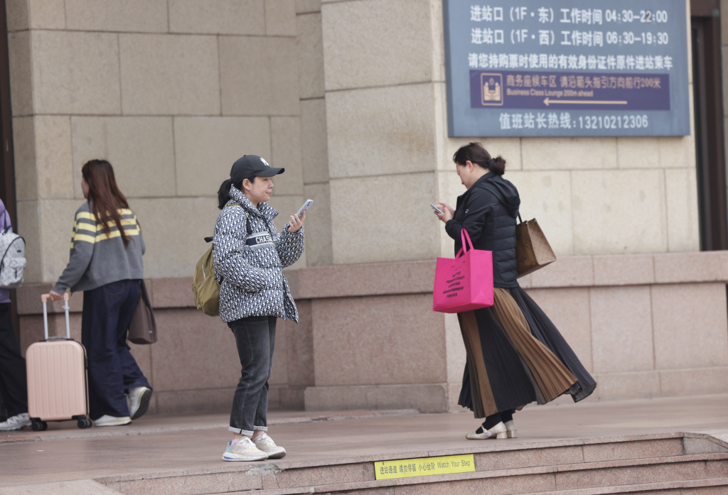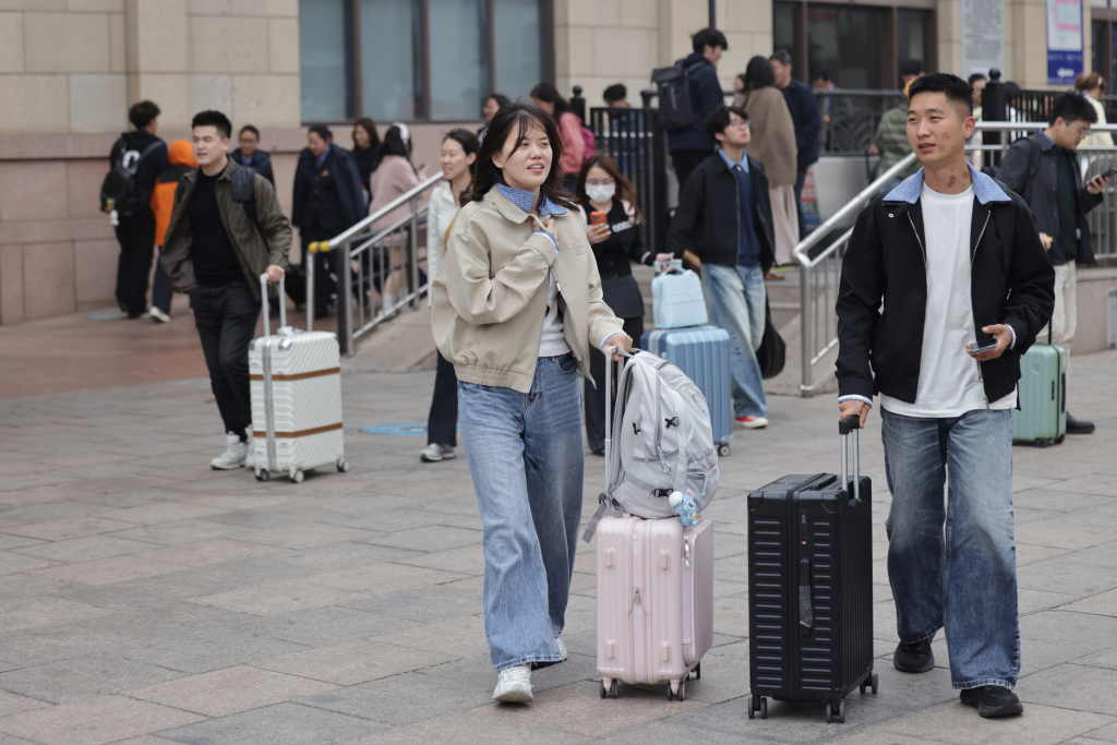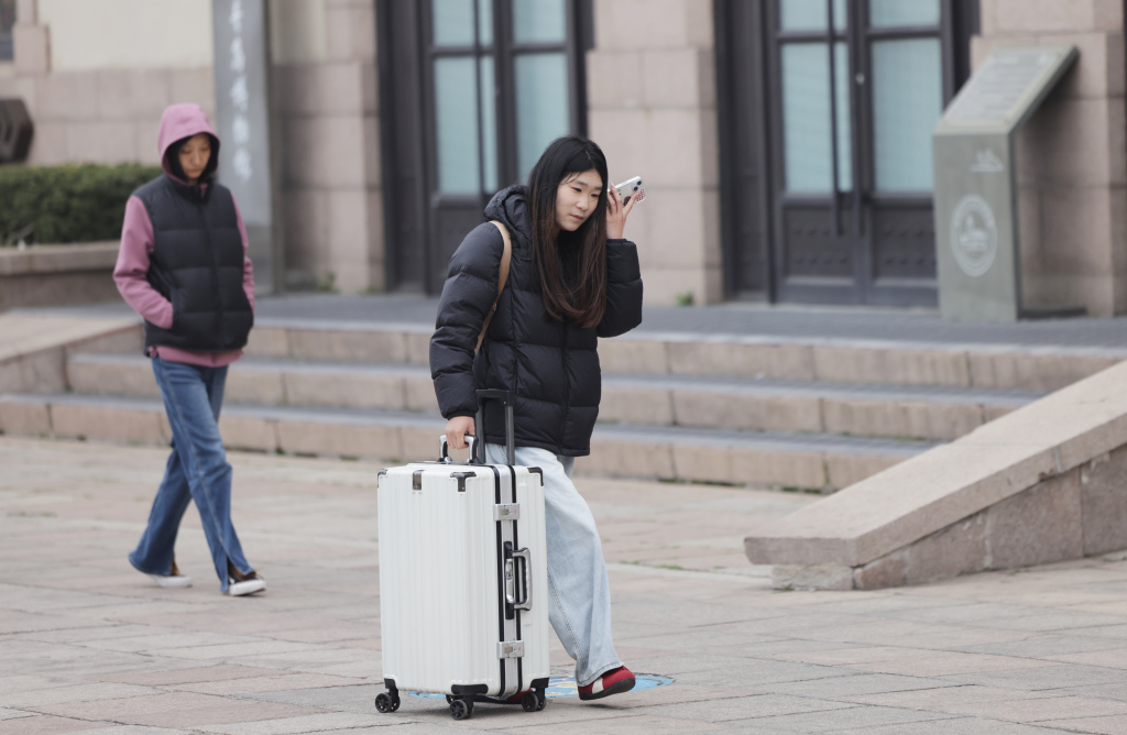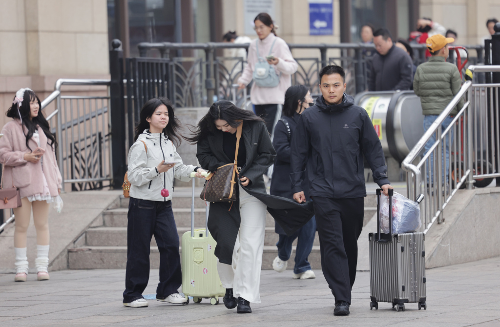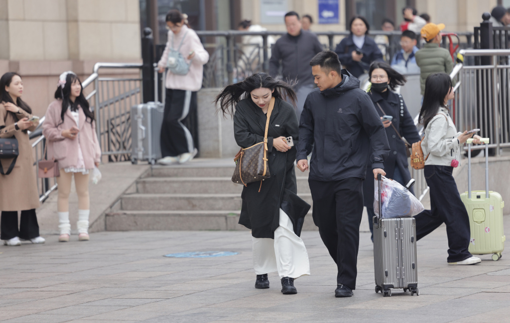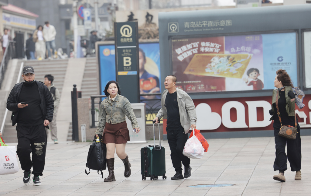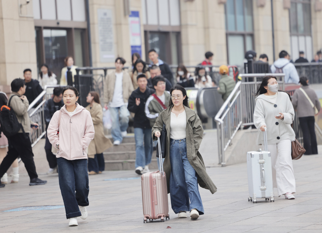 4月3日下午5时许,青岛火车站广场上,不少抵青旅客刚下火车,便拖着行李箱直奔海边,赴一场春日海景之约。(半岛全媒体记者何毅)