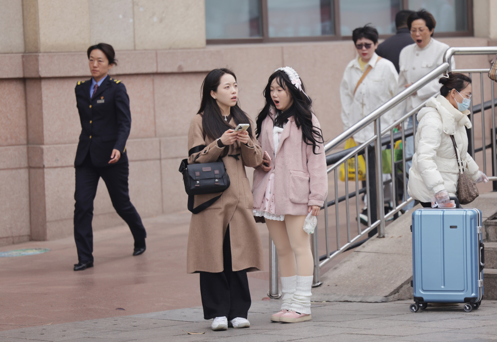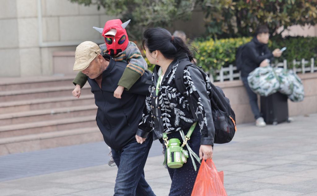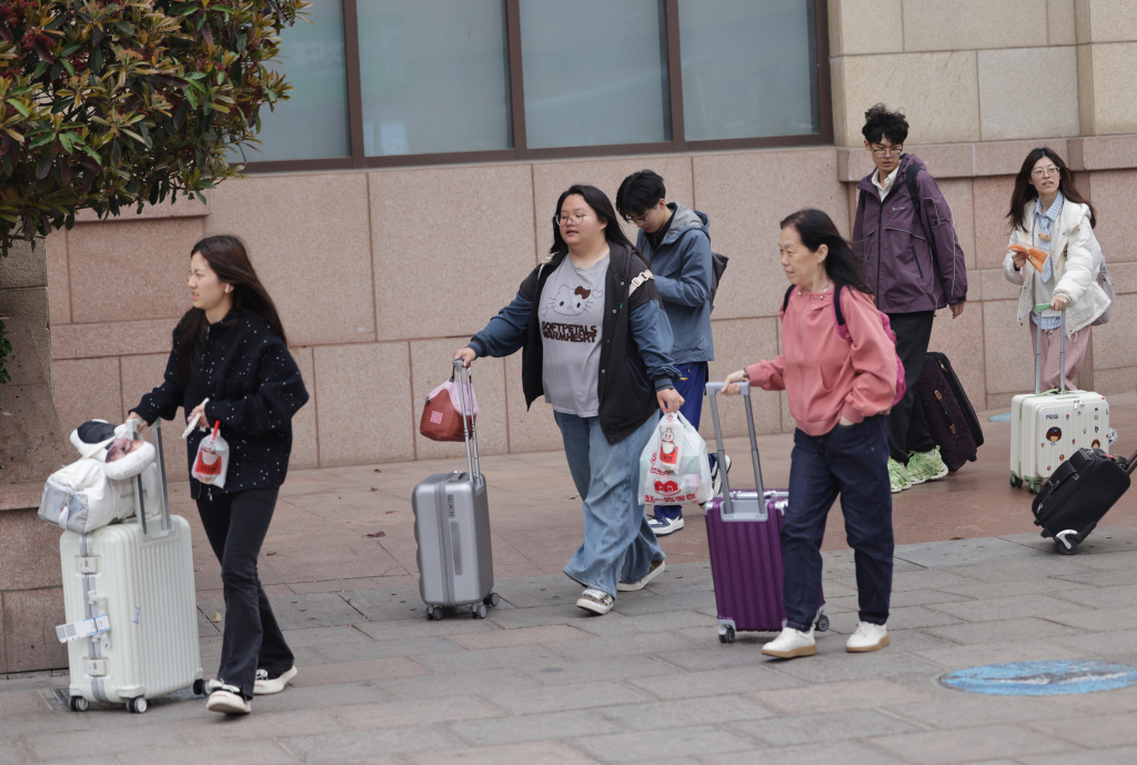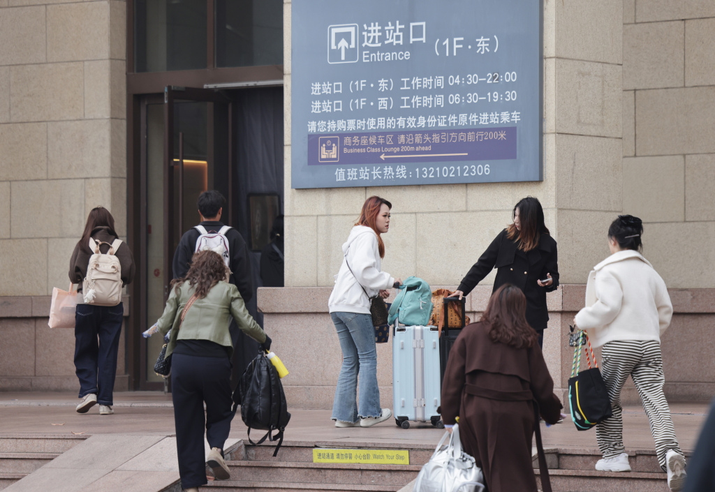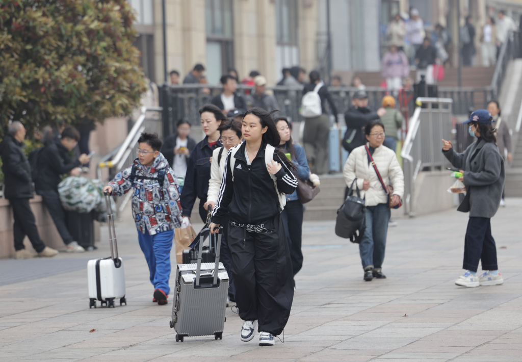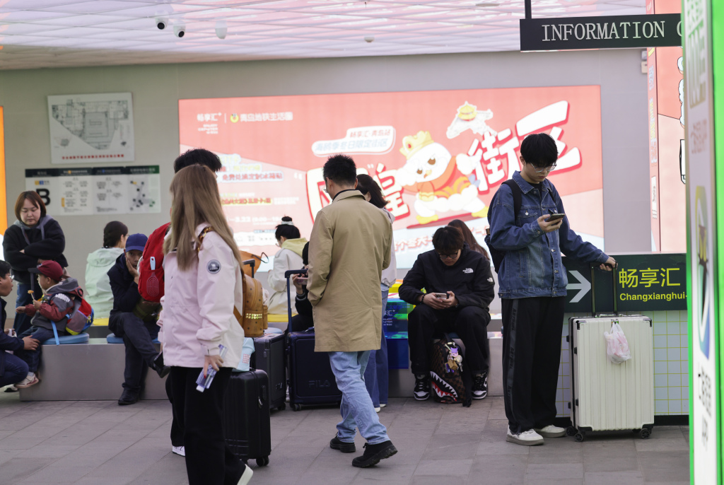 4月3日下午5时许,青岛火车站广场上,不少抵青旅客刚下火车,便拖着行李箱直奔海边,赴一场春日海景之约。(半岛全媒体记者何毅)