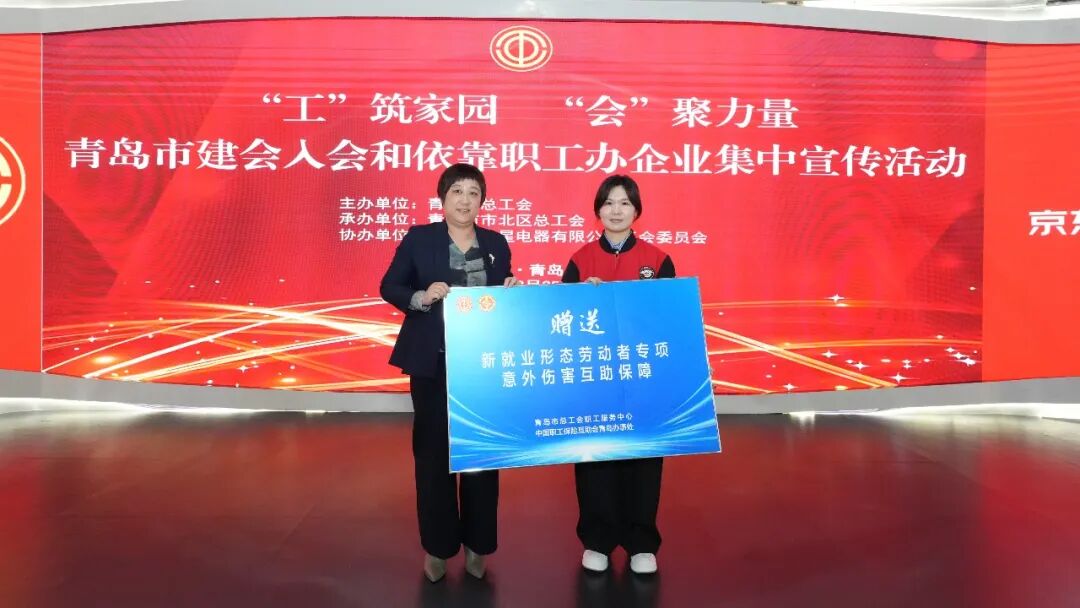 现场,青岛市总工会职工服务中心为青岛京东MALL新就业形态劳动者会员赠送了专项意外伤害互助保障,并为新入会职工代表发放了礼包。一份份保障、一件件礼包,承载着工会组织对职工的深情厚谊。