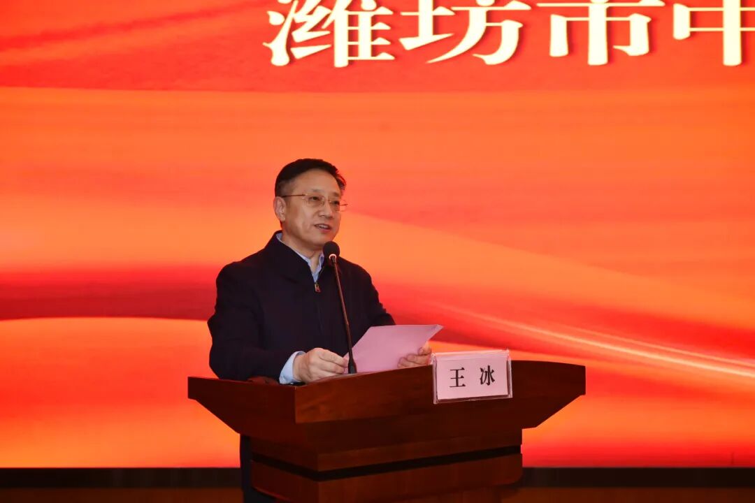 潍坊市卫健委党组成员、潍坊市中医院党委书记王冰致辞。他表示,此次北京中医药大学“丹心计划”人才培养基地落户潍坊,是校院深化合作的重要成果,也是献给潍坊发展大会的“健康贺礼”。北京中医药大学作为中医药高等教育首善学府,“丹心计划”实施六年来成果丰硕,此次基地落户医院,既是对潍坊市中医院综合实力的认可,也是一份沉甸甸的育人责任。下一步,医院将严格落实项目要求,为学员定制个性化带教计划,配备优质导师团队,做好全方位保障,助力学员提升中医思维与诊疗技能,实现“学员成长、群众受益、医院发展”的共赢目标。同时,医院将以此次合作为纽带,拓展校—院—地全方位协作,推动中医药人才链、创新链、产业链深度融合,为擦亮“宜居颐养·健康潍坊”名片增添活力。