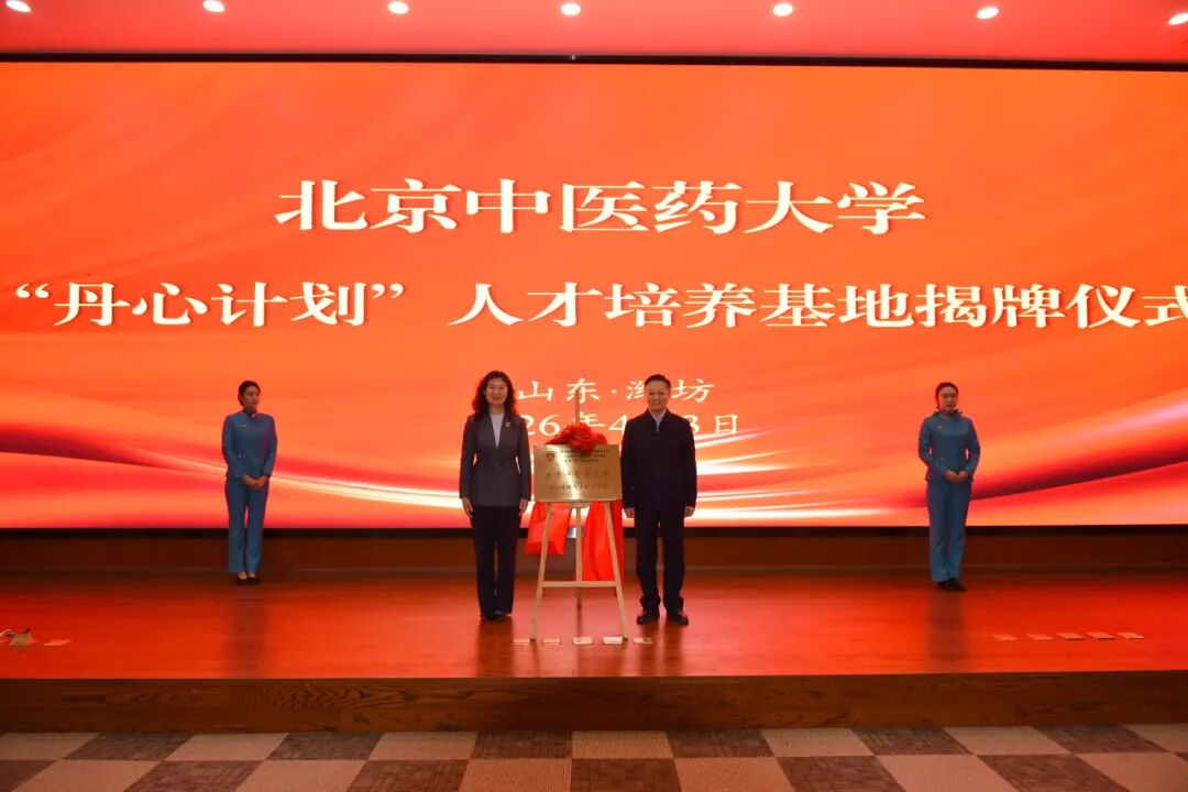 北京中医药大学副校长丁霞与潍坊市卫健委党组成员、潍坊市中医院党委书记王冰共同为“丹心计划”人才培养基地揭牌