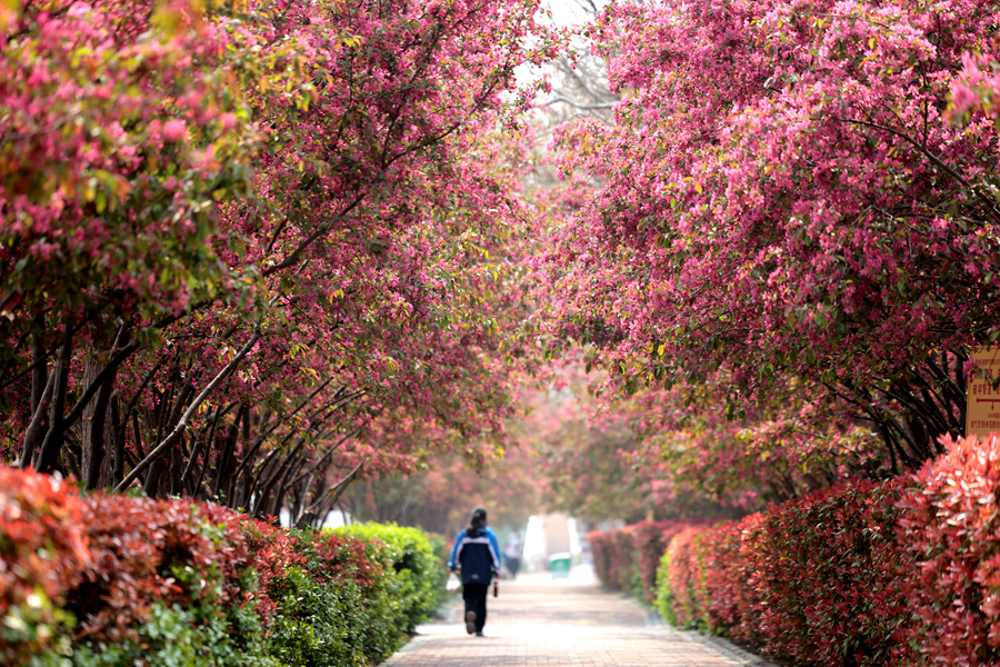 3月31日,聊城市主城区东昌路与二干路交叉口附近的“海棠长廊”迎来最美时节。在该路口南、道路西侧,海棠花竞相绽放、如云似霞,将道路妆点成浪漫的“花海长廊”。市民漫步其间,尽享一路花开的美好时光。