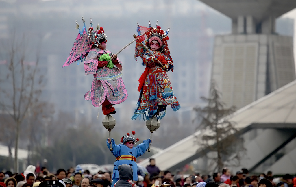 民俗表演:舞狮子、龙灯舞、踩高跷、山东梆子、豫剧样样有传承;