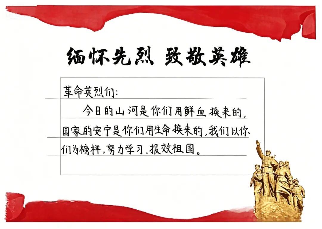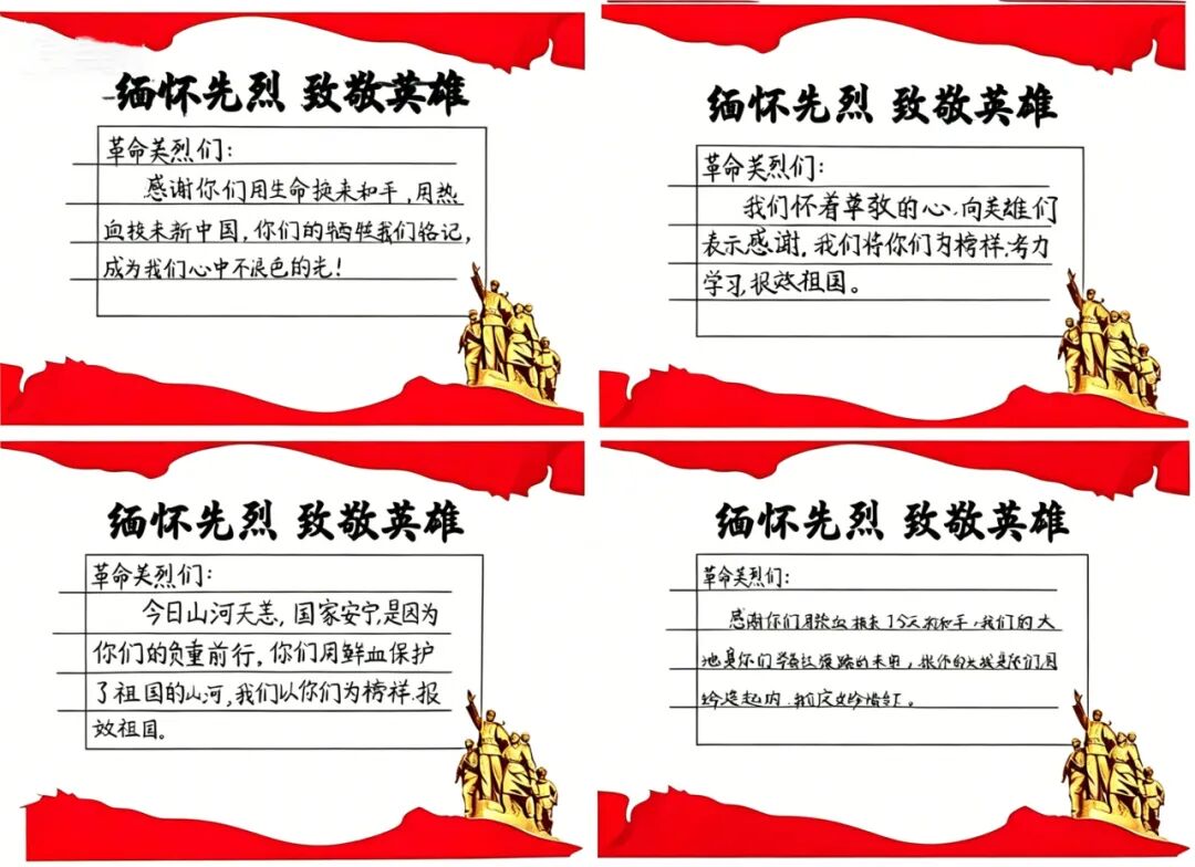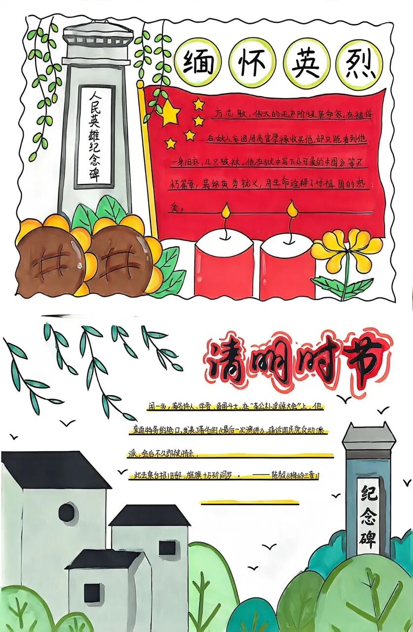 祭先烈研学活动结束后,同学们沉浸在深深的思索与感动之中,他们纷纷通过绘制手抄报、写研学感悟等形式记录下这次难忘的经历与内心的触动。同学们用自己的方式,将研学中的感悟转化为行动,让英烈精神在心中生根、发芽、开花。