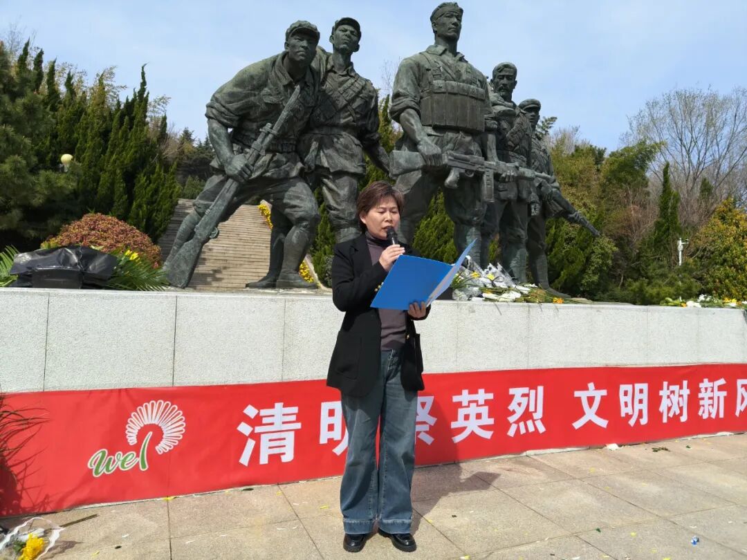 夏玲燕校长发表讲话,她深情缅怀了革命先烈们浴血奋战、无私奉献的英雄事迹,强调了铭记历史、传承英烈精神的重要性,鼓励同学们以先烈为榜样,坚定理想信念,锤炼过硬本领,从小树立家国情怀,努力成长为能够担当民族复兴大任的时代新人,用实际行动告慰英烈英灵。