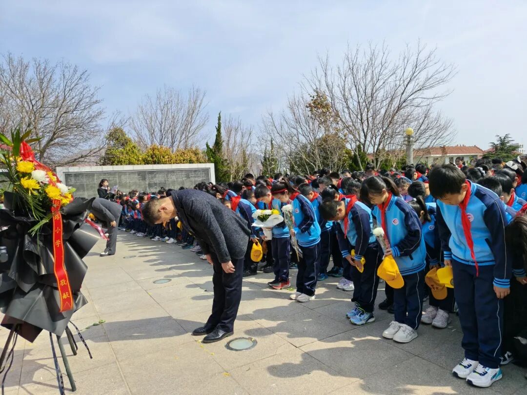 在庄严肃穆的氛围中,少先队员代表抬起花篮缓步前行,将承载着哀思与敬意的花篮轻轻摆放在纪念碑前,赵发周副校长和陈丽红副校长代表全体师生整理花篮缎带,全体师生向烈士纪念碑行三鞠躬礼,表达对先烈们的深切缅怀与崇高敬意。