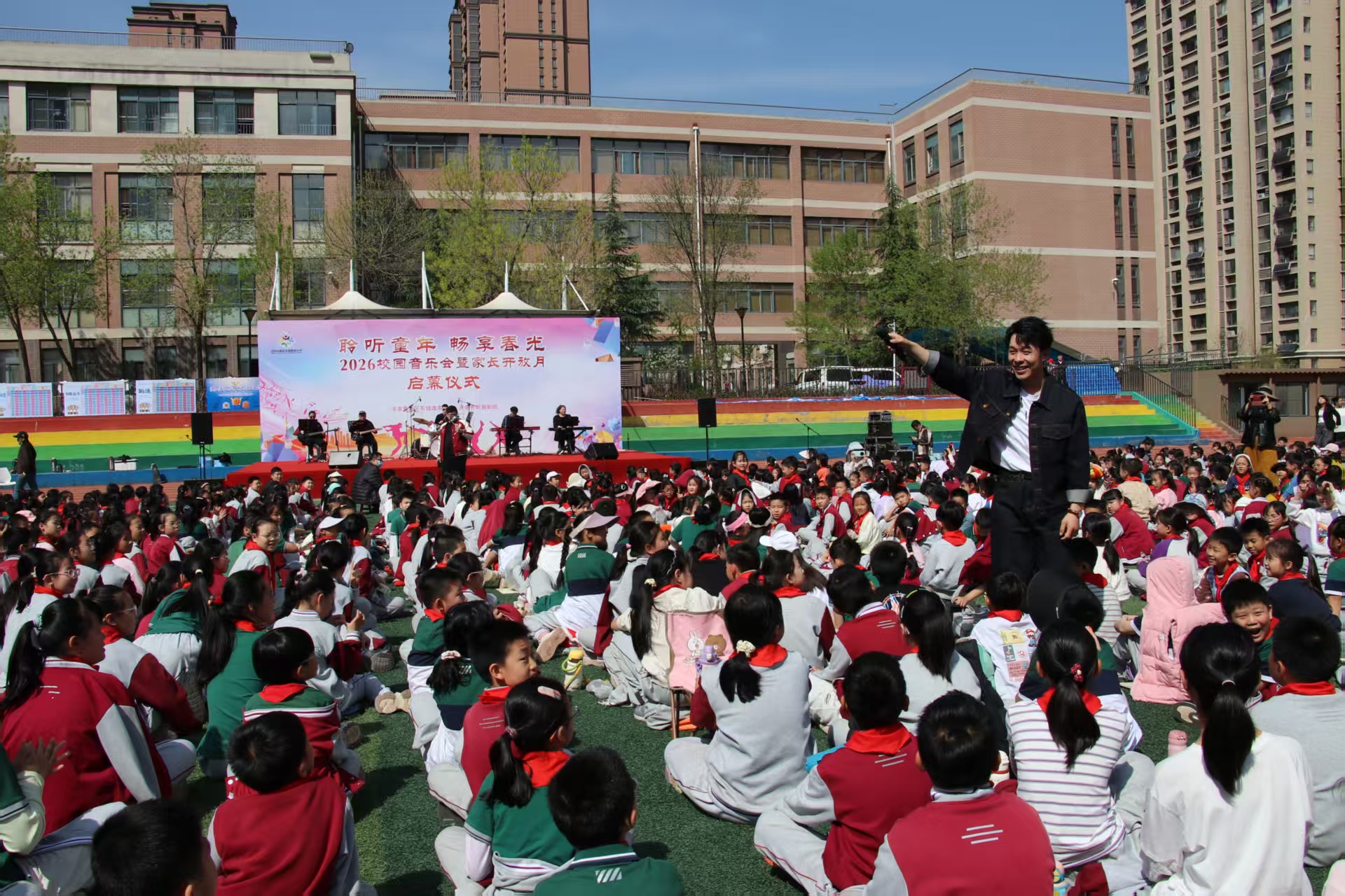4月3日上午,济南高新区东城逸家小学的操场满是欢声笑语——孩子们的嬉闹声、欢快的音乐声跟着春风漫遍校园,2026年“聆听童年,畅享春光”校园音乐会暨家长开放月启动仪式正热闹开启。学校联合济南市歌舞剧院献上高品质艺术盛宴,为期一个月的家长开放月拉开序幕,跳动的音符点亮孩子们的童年,温润的美育正悄悄滋养着每一颗成长中的心灵。