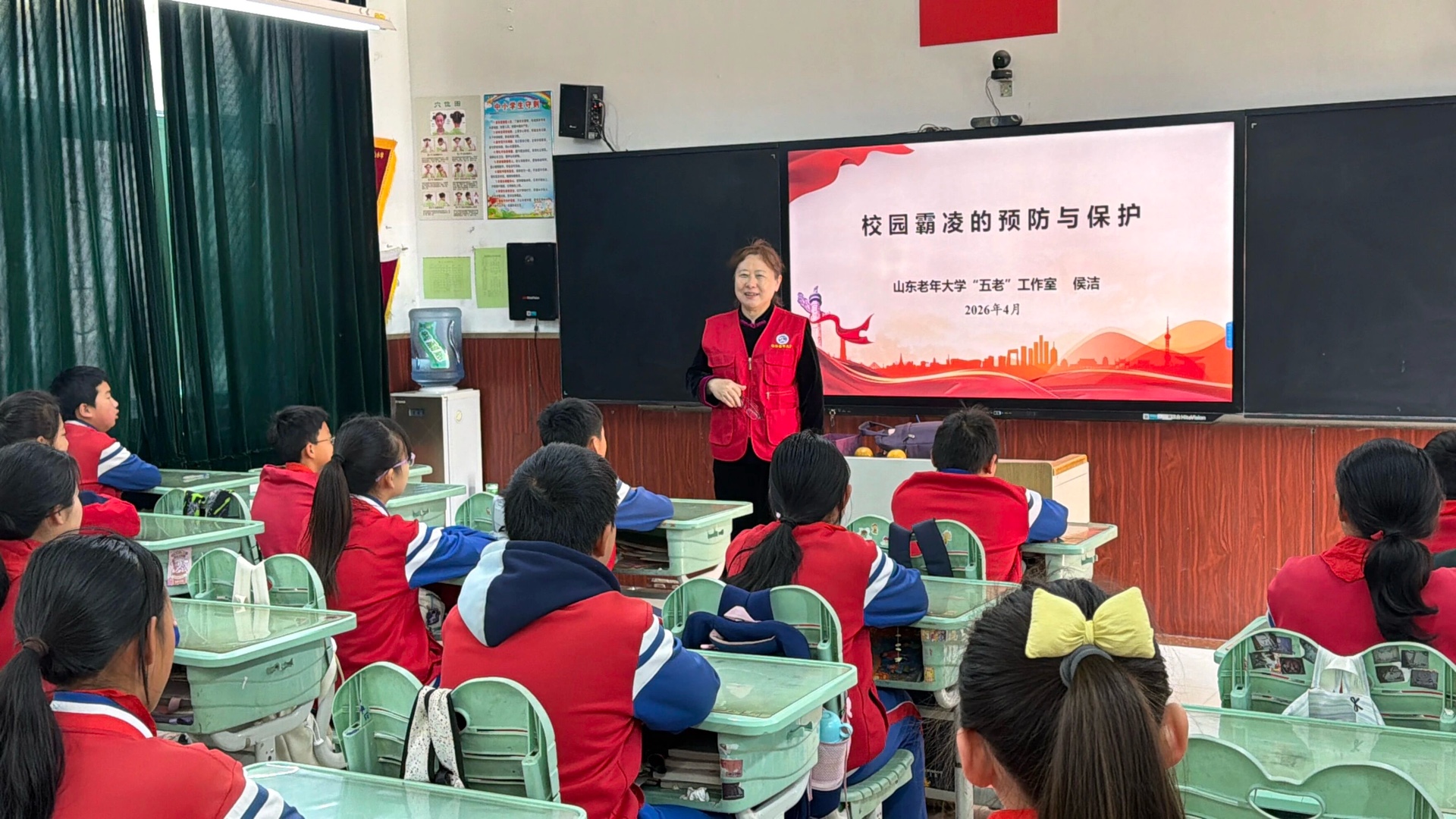 活动现场暖意融融,山东老年大学志愿团队为孩子们捐赠少儿经典读物,一本本承载着关爱与期待的书籍,被充实到班级图书角,为校园书香氛围添砖加瓦,让知识的光芒照亮孩子的成长之路。省老年大学的志愿者们还同步开展了《法治进校园》专题宣讲,结合鲜活生动的案例,用通俗易懂的语言,围绕未成年人犯罪的预防与保护校园安全等防护知识内容,引导学生们从小树立尊法守法意识,学会明法知礼、自我保护,为孩子们的健康成长筑起坚实的法治屏障。