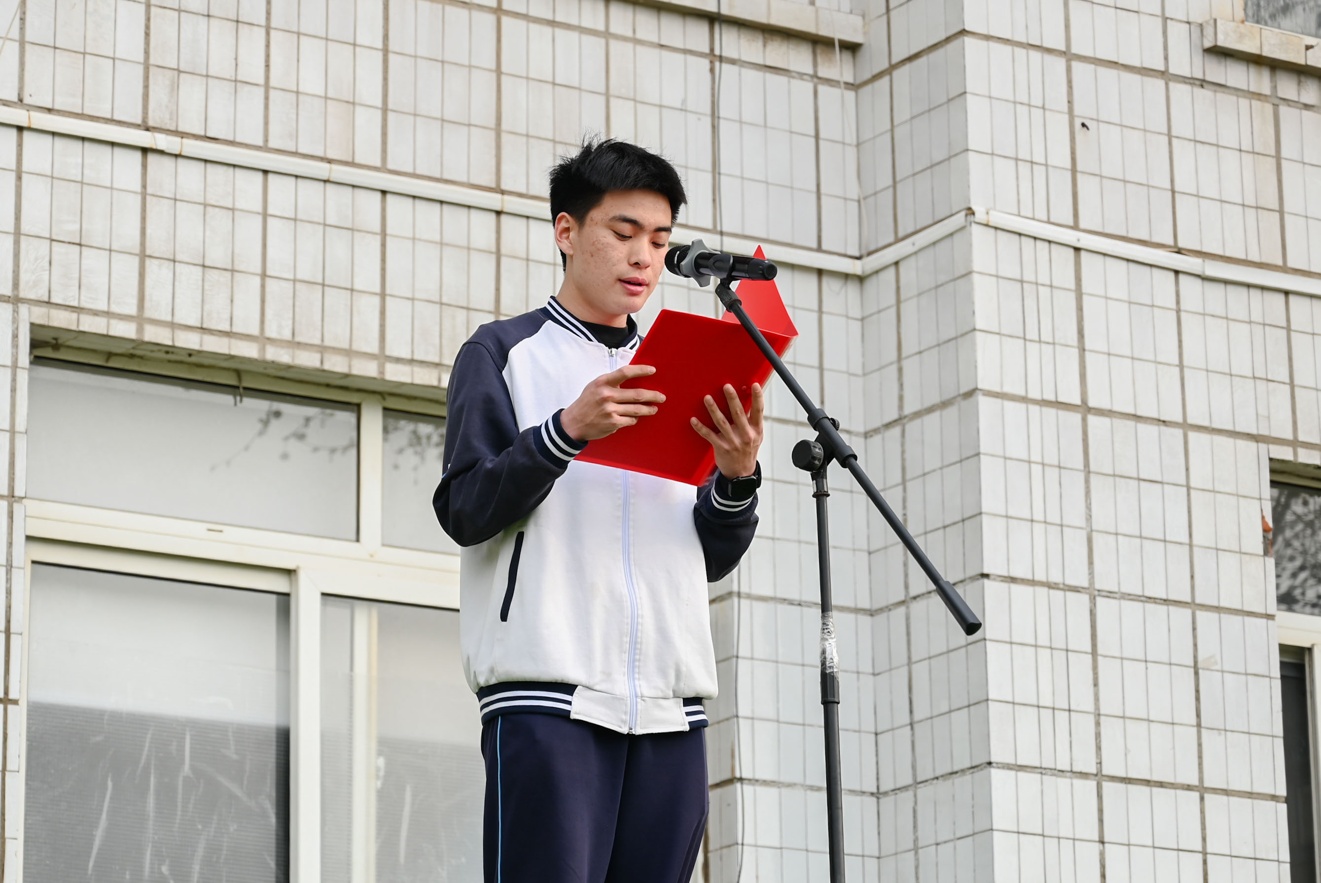 活动伊始,校团委李栋林书记宣布活动开始,全校师生列队肃立,五星红旗迎风展,壮志入青云。学生代表2023级2班谭泽坤同学发言,他从当代青年视角出发,追忆革命峥嵘岁月,表达了工贸学子铭记历史、不负韶华、勇担时代重任的坚定决心,为全体师生鼓足了前行的士气。
