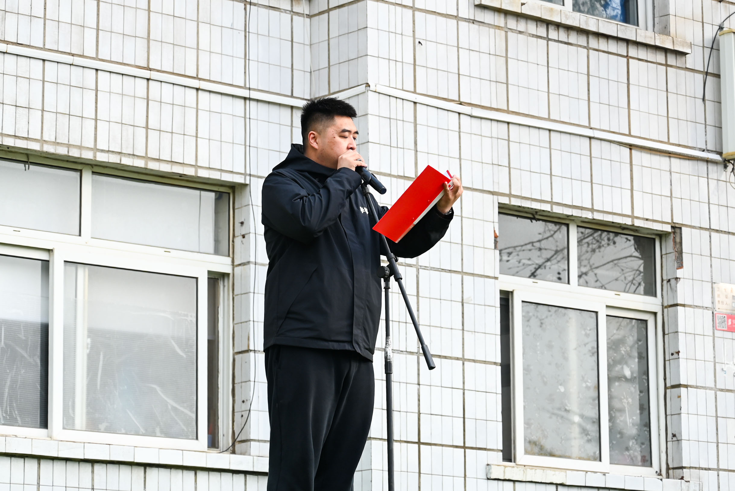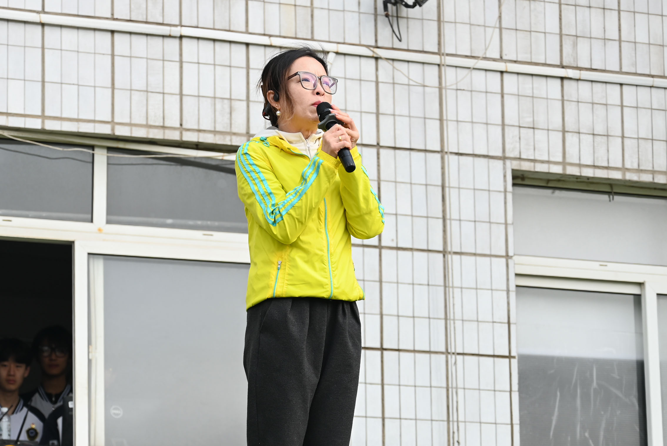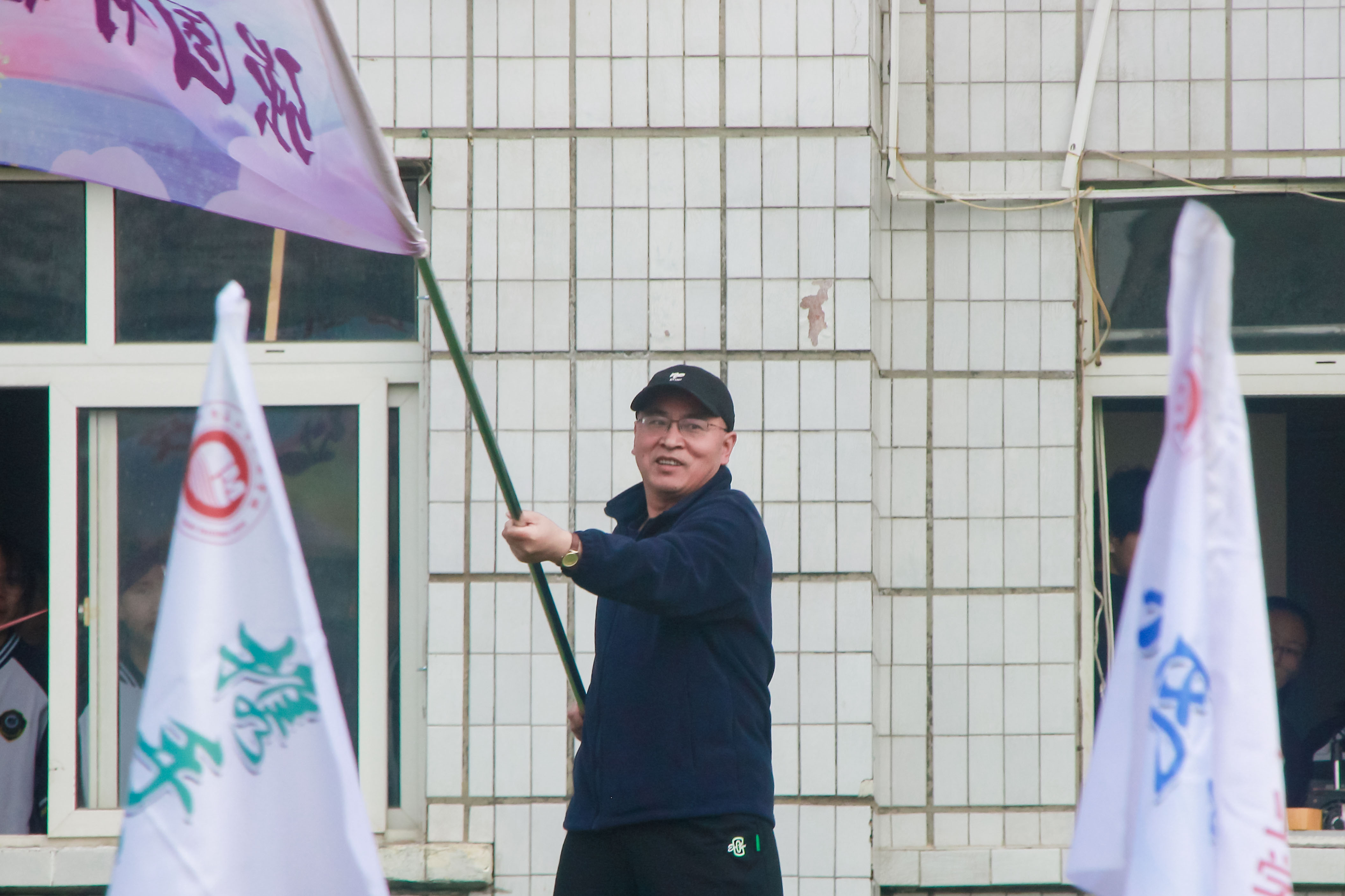 紧接着,颜海宝主任为本次活动郑重授旗。鲜艳的旗帜在风中舒展飞扬,寄托着对青年学子勇担使命、砥砺前行的殷切期望。授旗仪式后,齐真校长发表激昂动员讲话。全体师生要在徒步过程中锤炼吃苦耐劳的品质,在缅怀先烈中厚植家国情怀,以昂扬的姿态完成此次拉练任务。