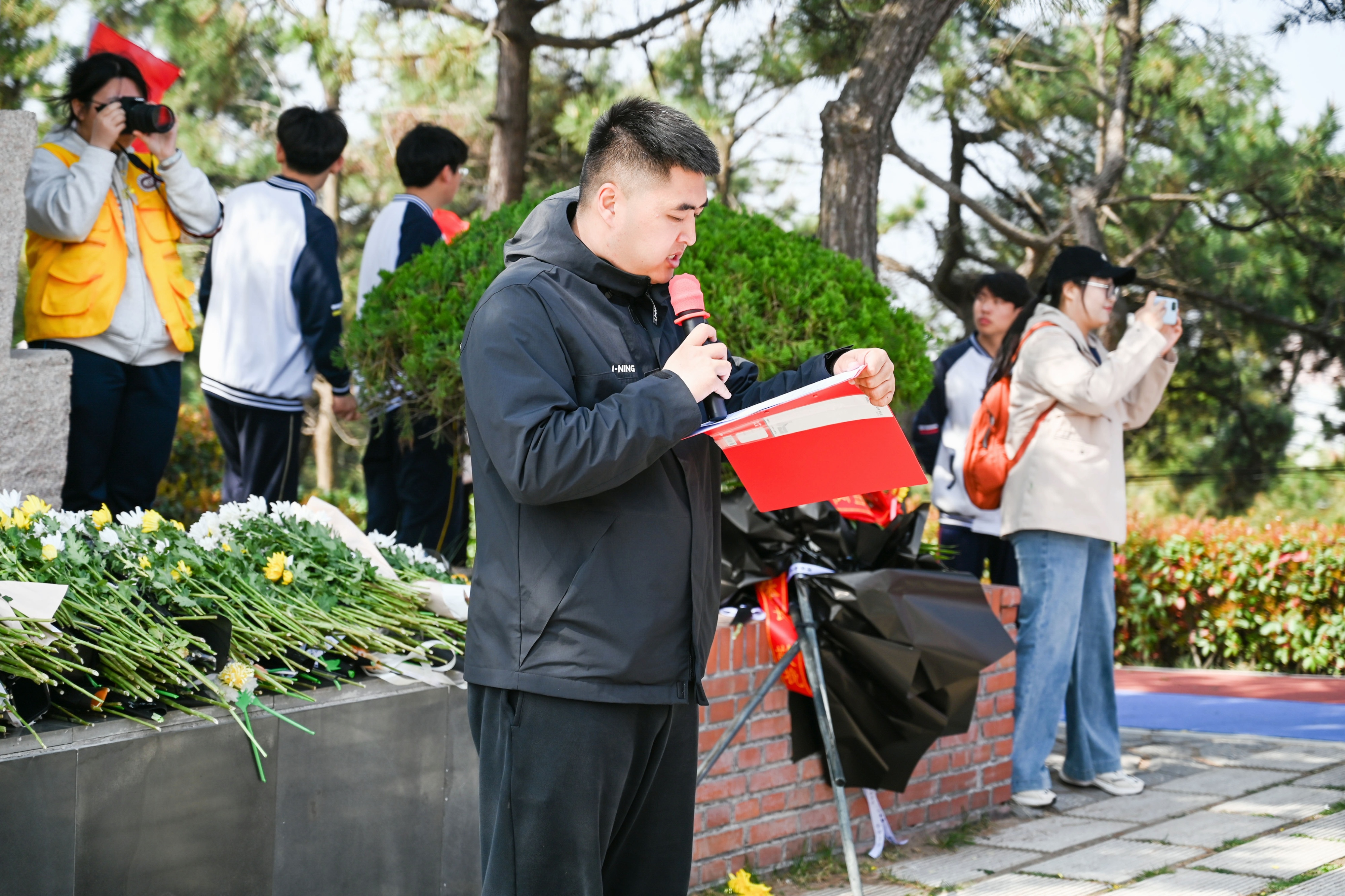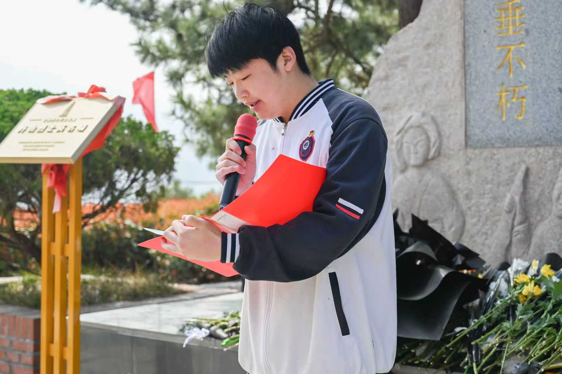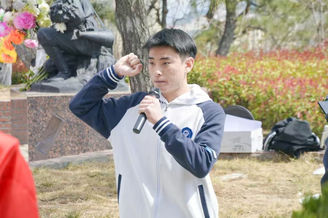 伫立丹山革命烈士纪念碑前,全体师生垂首肃立、静默致哀,低沉的氛围裹着春日清风,将对革命先烈的深切缅怀与无限崇敬尽数传递。学生代表2024级7班王子翔以饱含深情的语调庄严献词,字字句句追忆英烈浴血奋战的峥嵘过往,诉说着对先辈舍生取义的崇高敬意,让红色信仰深深扎根心间。