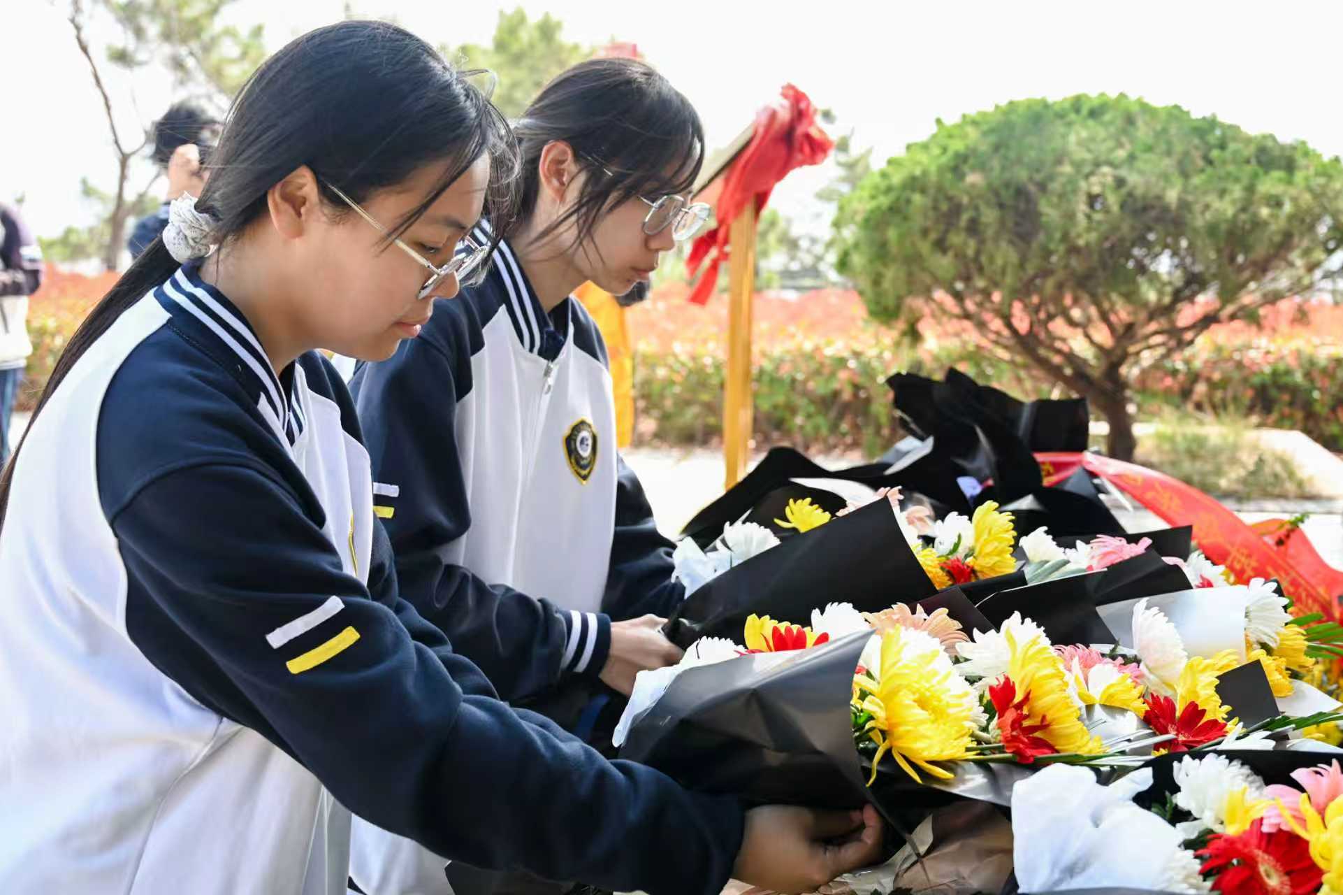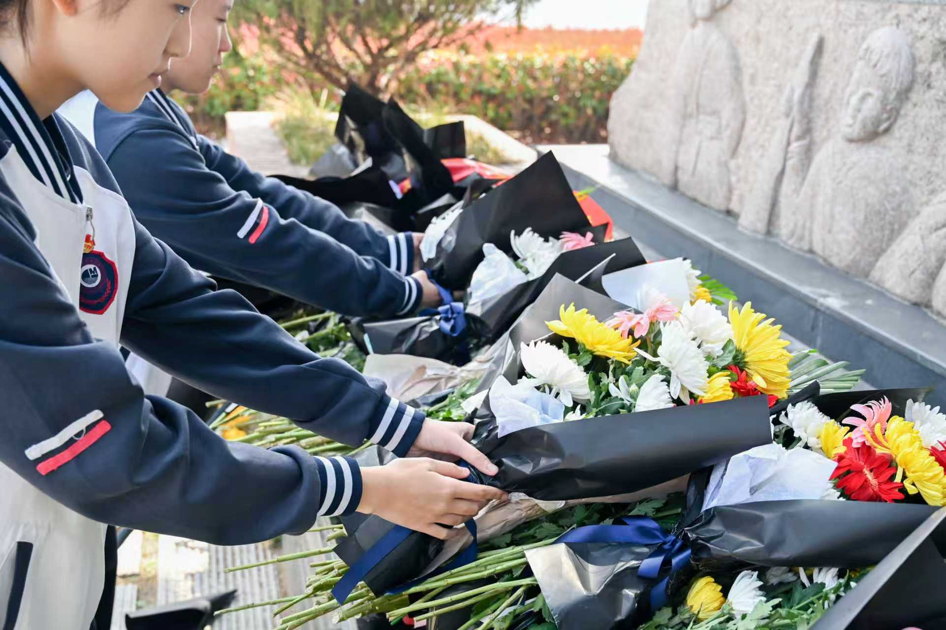 一束鲜花祭忠魂,一纸签名践初心。宣誓结束后,学生代表手捧洁白鲜花,缓步上前恭敬的献在烈士墓前,以纯洁花语寄托绵绵哀思。随后,全体师生有序来到主题横幅前,郑重签下自己的名字,一笔一画皆是承诺,将爱国情怀与奋进决心,深深镌刻在青春答卷上。