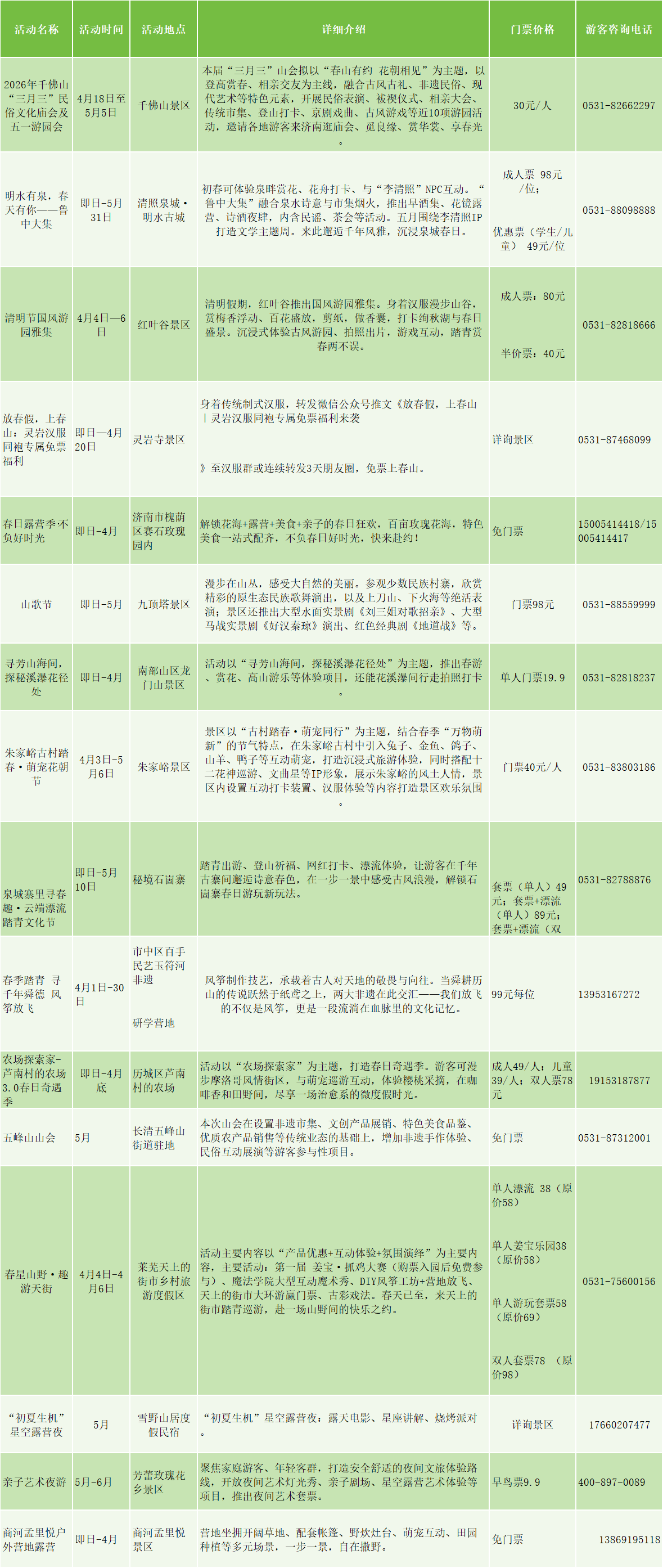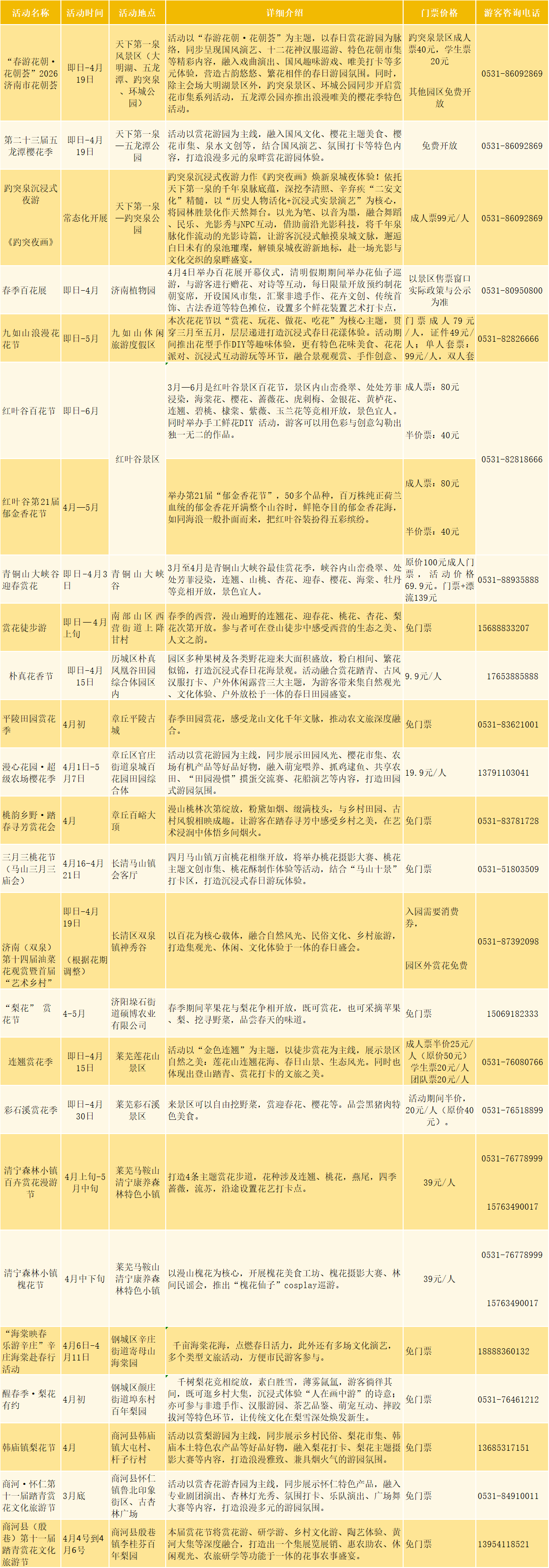 一城山色半城湖,趵突腾空柳线舒。莫负春风传花信,且携诗酒赴泉都。为方便市民游客春季赏花踏青、休闲出游,济南市文化和旅游局联合区县文旅行业单位,推出漫游花海、踏青露营、亲子潮玩、文艺大观、乡村休闲等五大主题100多项文旅活动,诚邀市民游客走进春光、惬意游玩。