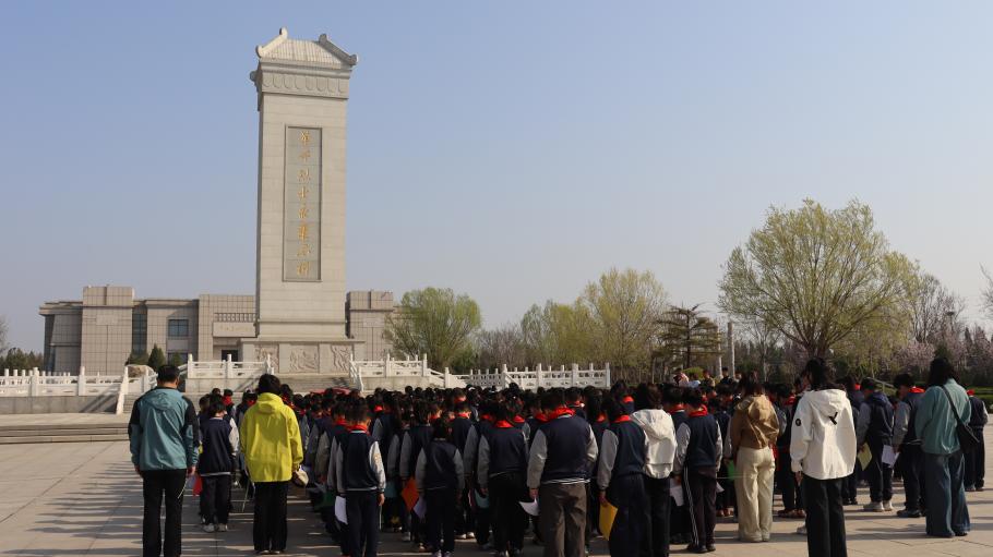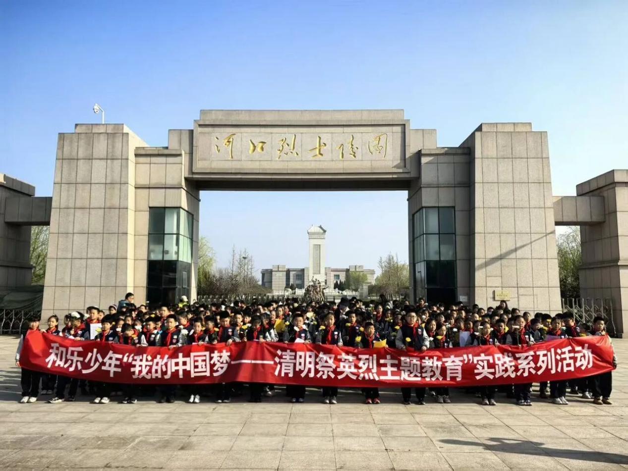 胜利河口第二小学全体师生整齐列队,开展祭扫英烈活动。全体师生奏唱国歌,随后肃立默哀,深切缅怀先烈英灵。默哀结束后,学生代表领读《少年中国说》,稚嫩而铿锵的声音传递着少年心声。随后,师生们手持黄白菊花,依次向纪念碑敬献,少先队员代表率先上前献花。全体师生高举右拳、庄严宣誓,彰显新时代少年的责任与担当。活动最后,师生共同参观烈士纪念馆,以实际行动致敬先烈。