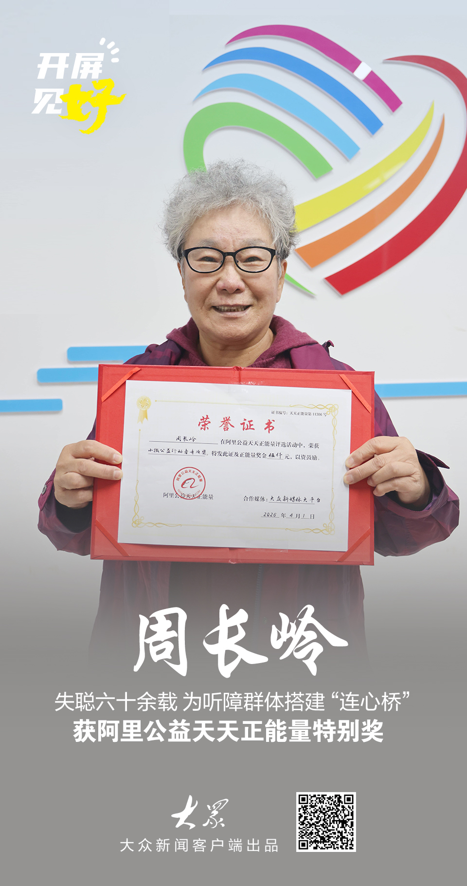 开屏见“好”|身处无声世界仍为听障群体搭“桥”,78岁老人周长岭获正能量特别奖