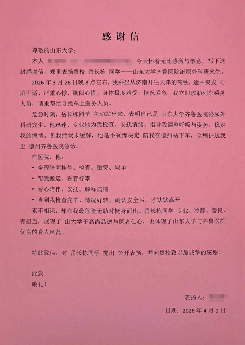 从车厢到诊室全程保驾护航!山东大学齐鲁医院研究生高铁上伸援手