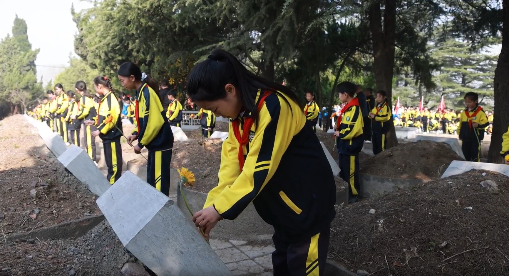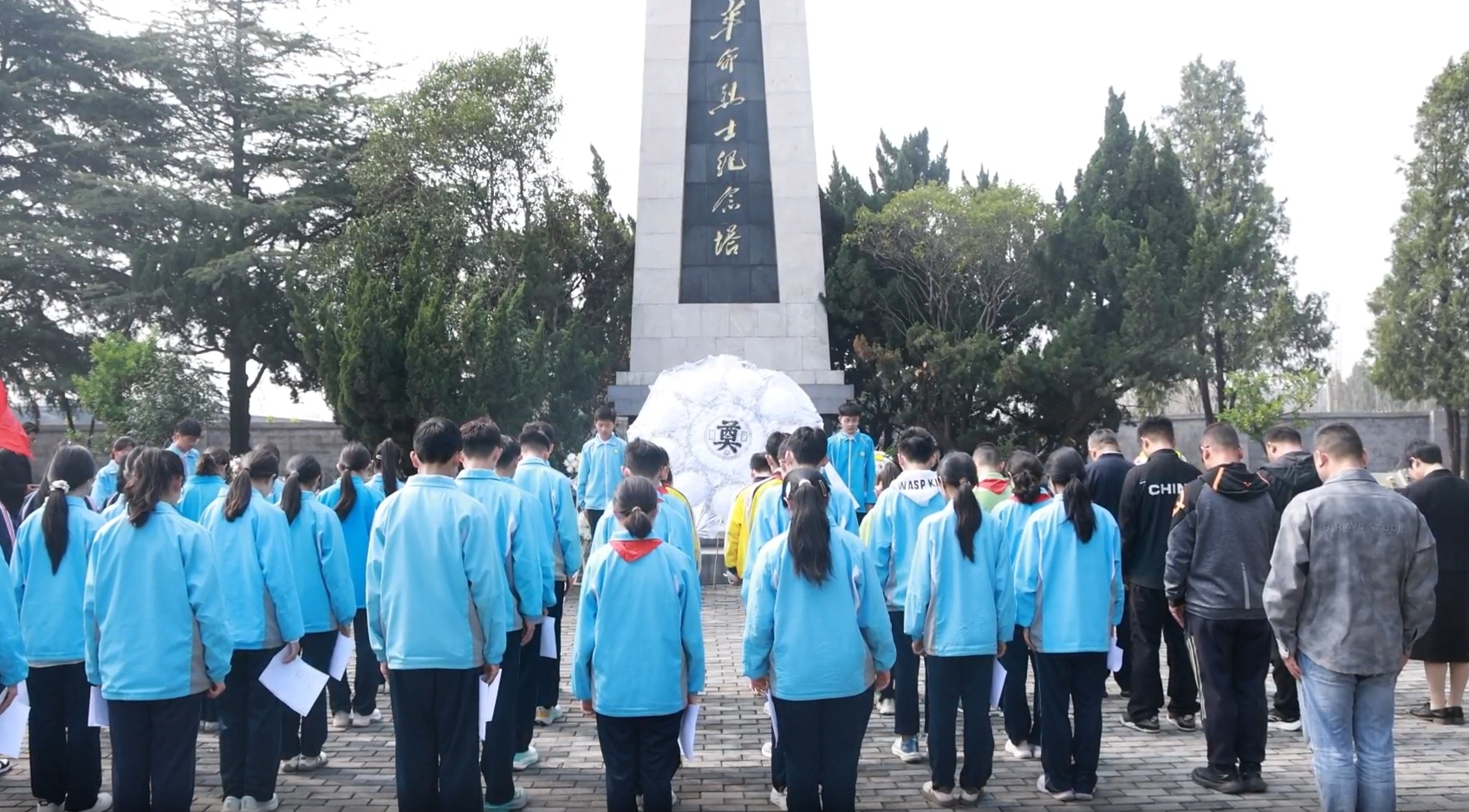 仪式结束后,师生有序瞻仰纪念碑与墓区。同学们驻足凝视碑文,细读烈士生平,轻放手中白花寄托哀思。
