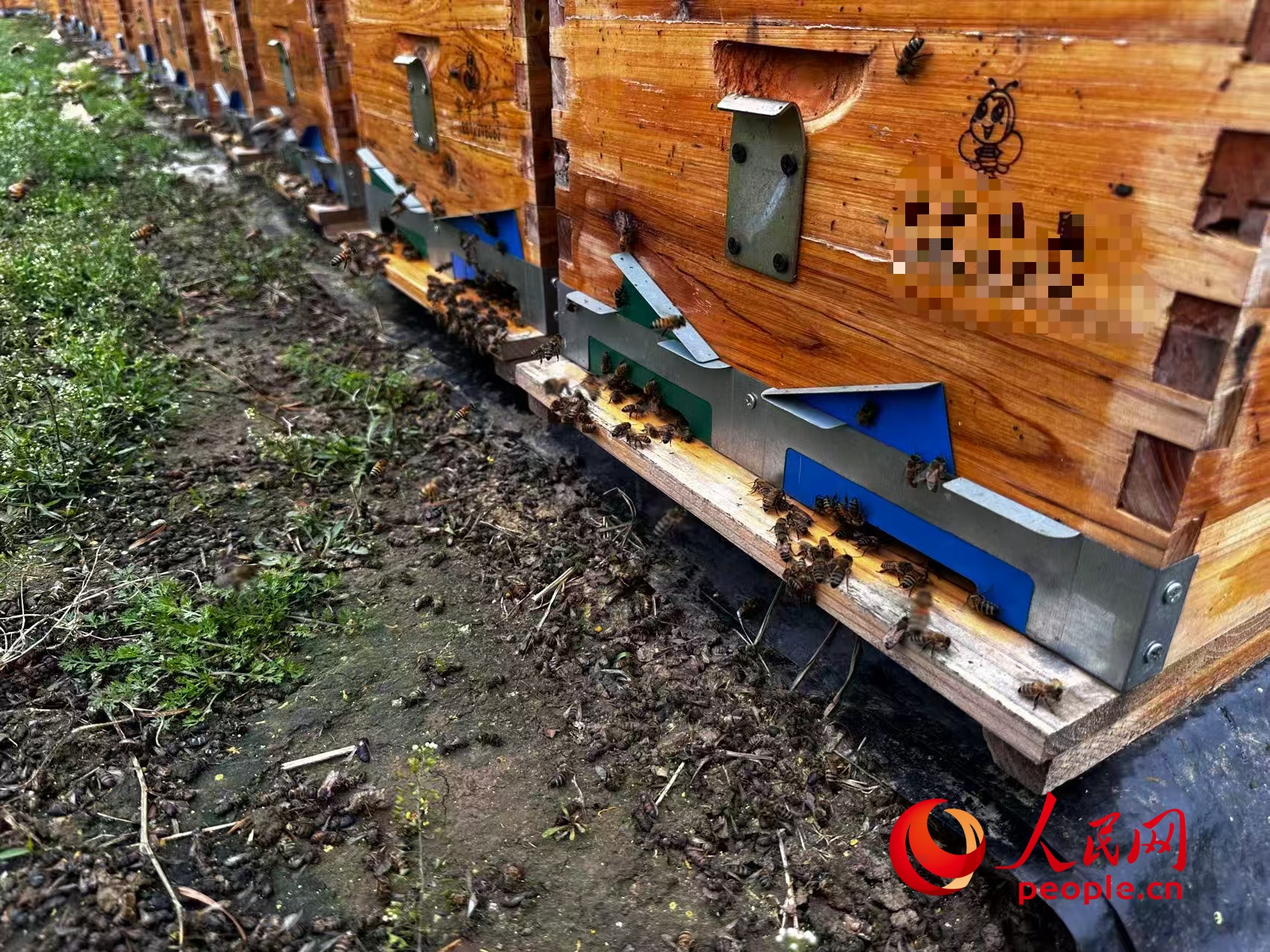 成群的死蜂在蜂箱附近。人民网记者 游天燚摄