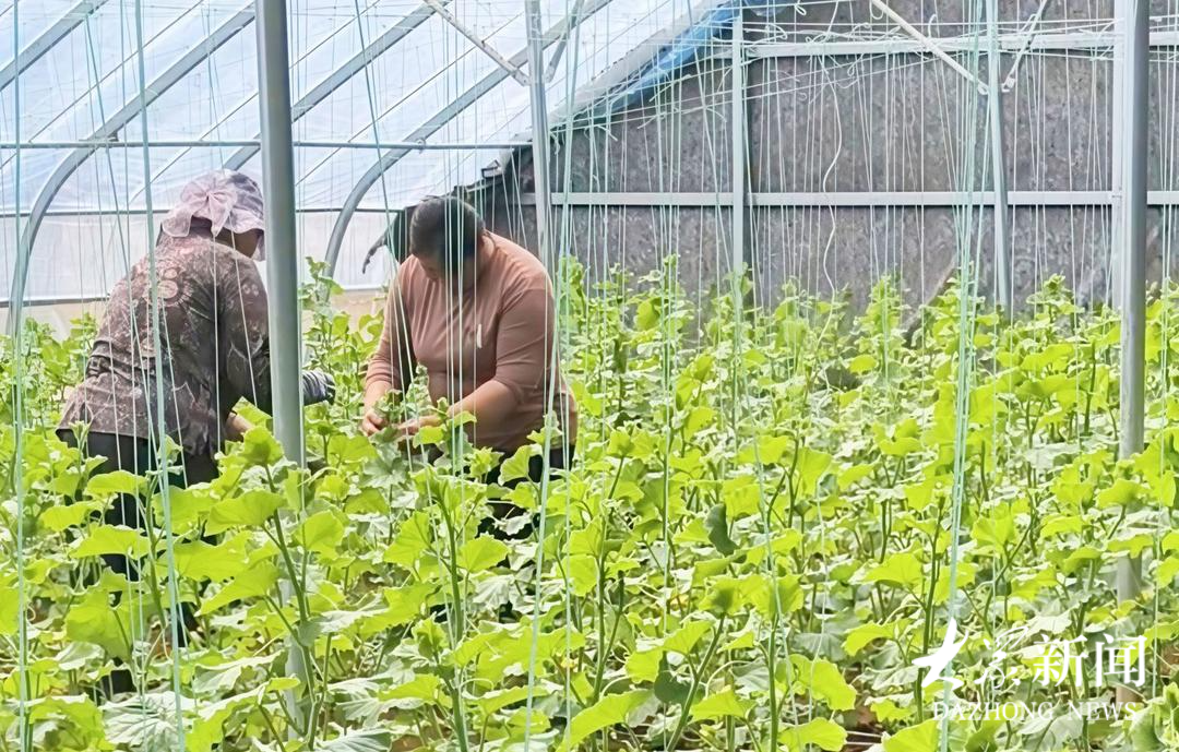 在他们的身后,田垄上青苗齐整如梳,生机盎然。“大棚是新建的。”王怀水说,“这是新种的网纹瓜。”王怀水是石都庄村大棚种植的技术负责人,自去年冬天万德街道石都庄村食用菌种植项目落地施工以来,他就盯在工地上负责监理。