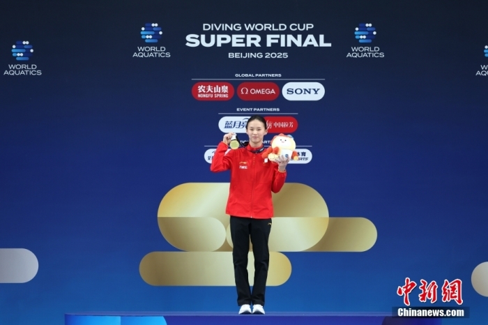 资料图:2025世界泳联跳水世界杯总决赛(北京)女子十米台决赛在国家游泳中心“水立方”进行,中国选手陈芋汐以431.25分夺得冠军。中新社记者 富田 摄