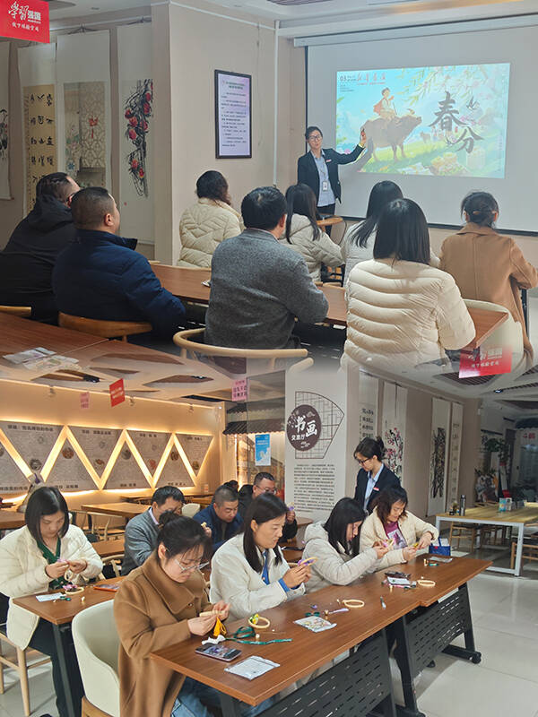 此次活动围绕“知春分、识春意、做手作、享时光”四大环节展开。活动伊始,工作人员为大家讲解了春分的节气渊源、传统民俗及花信文化,结合经典诗词,让大家快速领悟中华传统文化的魅力,进一步增强文化自信。