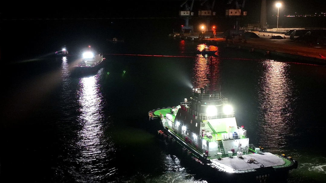 人员救助方面,采取“水面搜寻+空中侦察”方案,利用热成像系统和无人机红外探测技术,结合救援队伍“急流救援”“活饵救援”等技术,快速完成落水人员搜寻与救助。溢油处置方面,运用无人机夜视和“海上漂流模型”科学评估油膜扩散态势,采取纯电动拖轮辅助照明模式高效开展油污围控与回收,实现夜间溢油的有效监测与及时处置。演习达到预期效果。