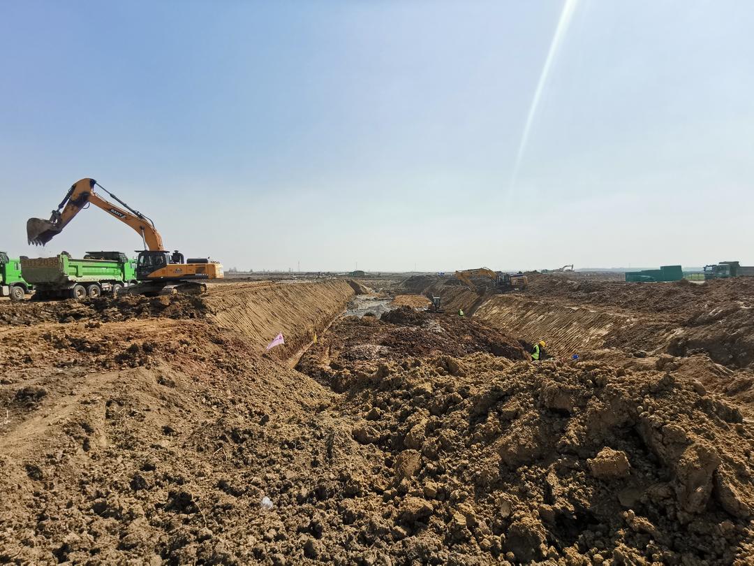 清明节小长假期间,在胶莱街道官路水库输配水(一期)原水输水管线工程二标段,100米宽的绿色铁丝网围挡的纵深方向,挖掘机、推土机等工程车辆往来繁忙,身穿工程服、头戴安全帽的工程人员正在神情专注地指挥机械施工,城投集团所属青岛官路水库开发建设有限公司项目负责人,与现场管理人员聚在一起大声交流具体施工方案,工地上一片热火朝天的景象。