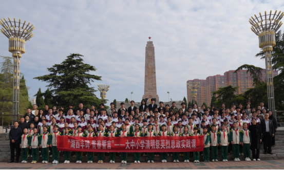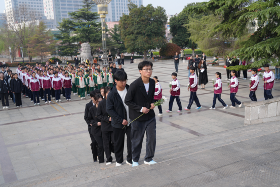 上午8时整,活动在嘹亮的国歌声中拉开序幕。全体师生肃立默哀、三鞠躬,表达对革命先烈的深切缅怀与无限敬意。大中小学学生代表共同向烈士纪念碑敬献花篮,并依次献花、瞻仰纪念碑,湖西革命精神在无声的致敬中浸润心田。