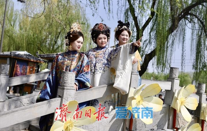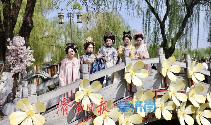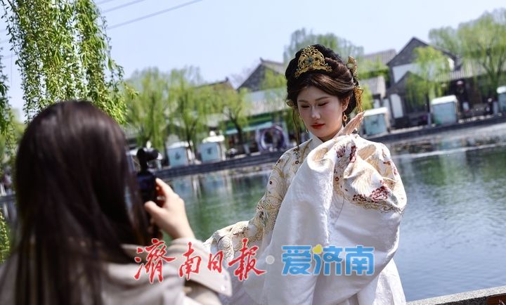 4月4日,清明小长假首日,济南百花洲迎来踏青客流。青石板巷间,身着汉服的年轻女孩们成为主角。她们执团扇、倚石桥,在“家家泉水”畔定格古韵瞬间,旅拍打卡热度持续攀升,为老街春日增添一抹流动风景。