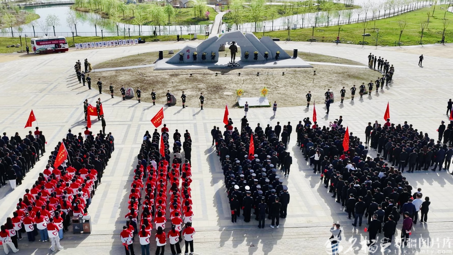 500余名党员干部抵达问勇广场开展英烈纪念活动。和田县融媒体中心供图