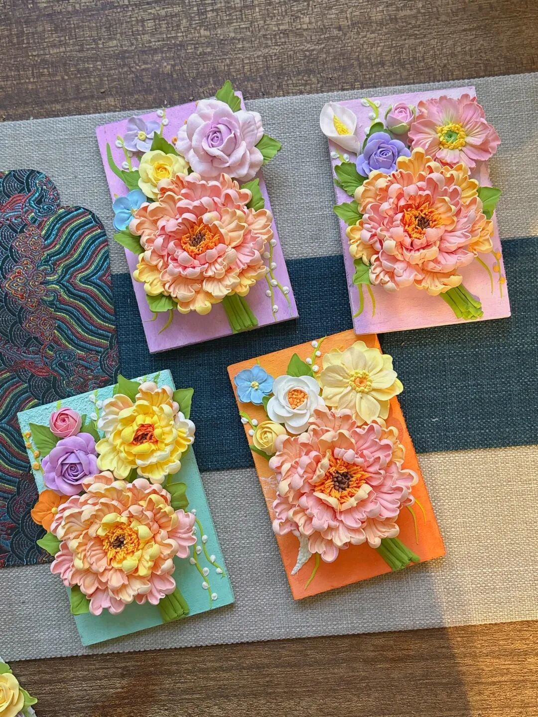 春日多巴胺牡丹粘土冰箱贴,每一个都是纯手工制作,以超轻粘土作为原料,用裱花袋做牡丹造型,搭配撞色,呈现多巴胺色调。由于是纯手工产品,所以每一个都会有细微的差别,同时每一款冰箱贴也都找不到第二款一模一样的,真正做到了独一份。