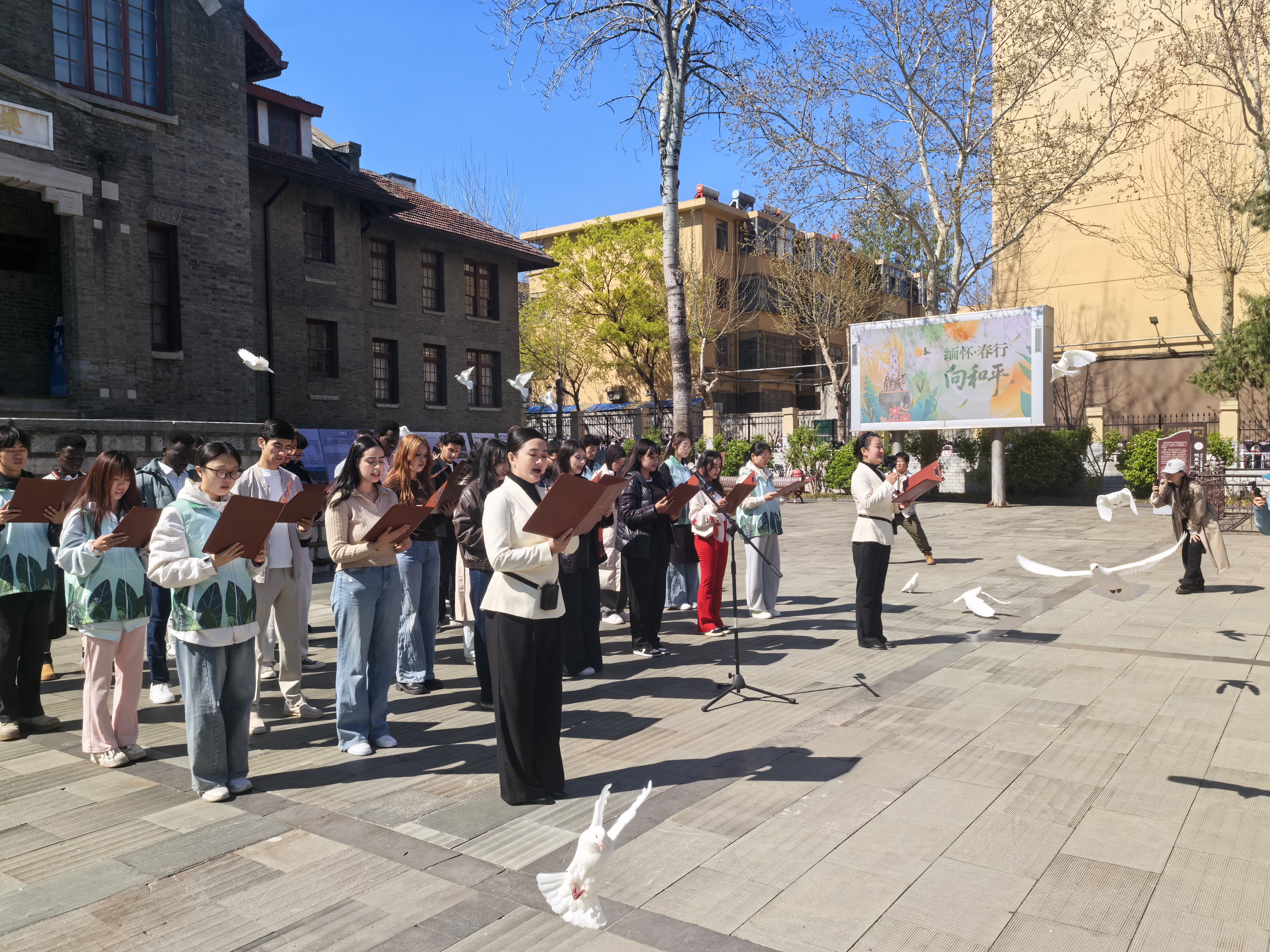 4月4日,“缅怀·春行·向和平”清明节主题活动在潍县西方侨民集中营旧址博物馆举办。活动以中国传统节日为纽带,引导近20个国家的留学生与中国学生在参观展陈、民俗体验、集体诵读中具身体验和平文化,搭建中外文化交流桥梁。