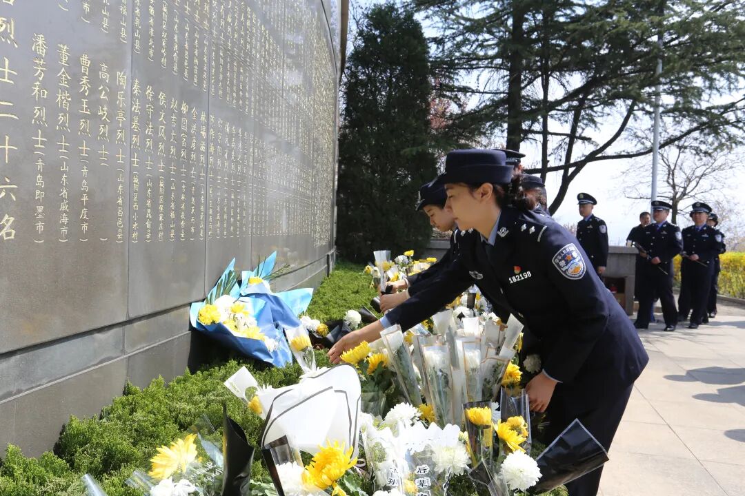 4月3日上午,青岛市公安局城阳分局组织民警赴城阳区革命烈士陵园开展“缅怀革命先烈 传承红色精神”主题党日活动。