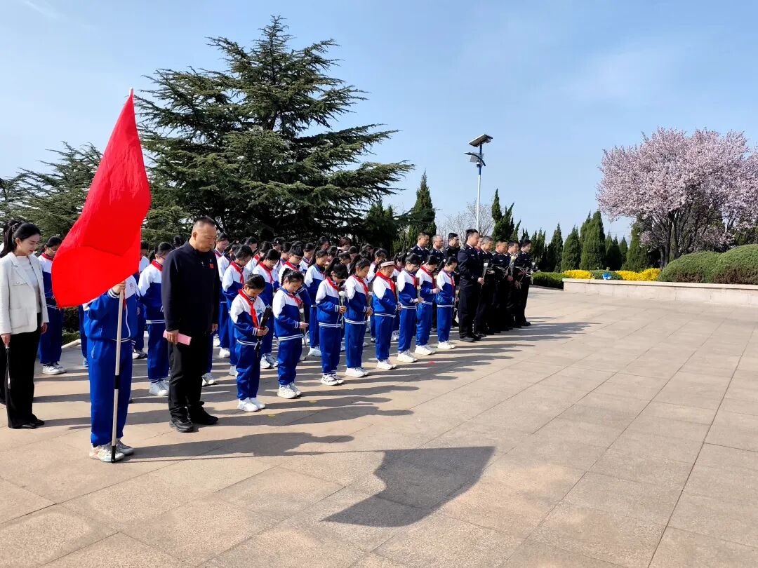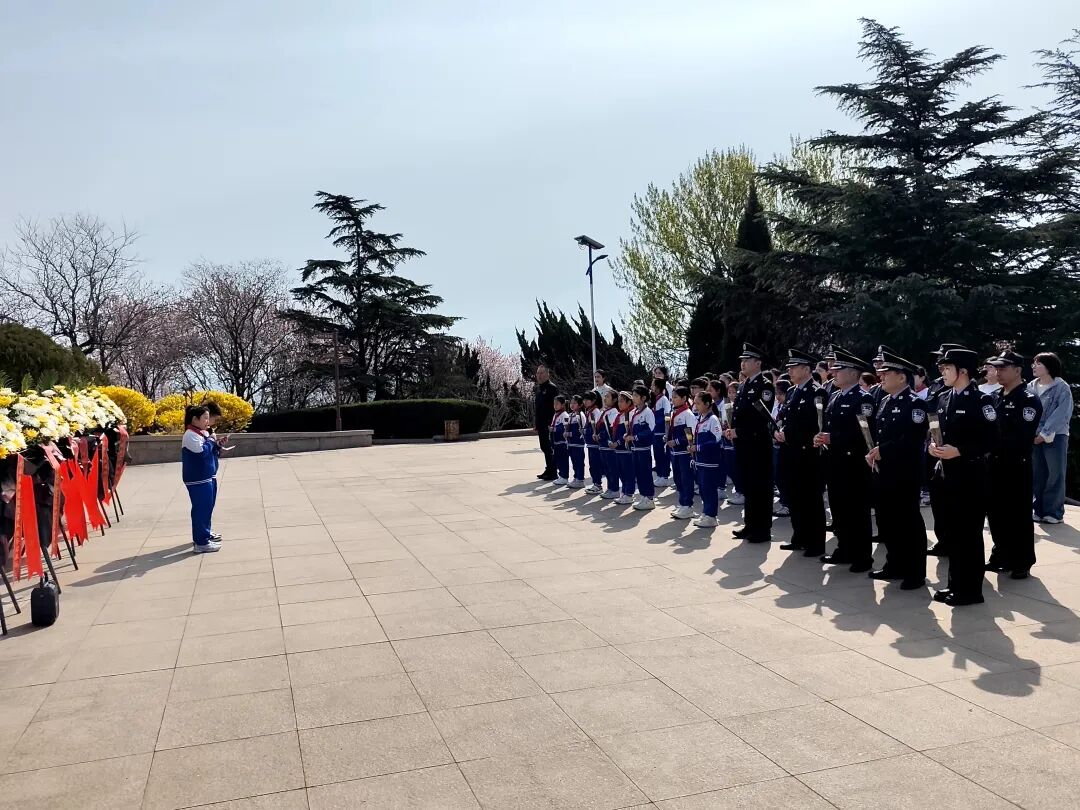 4月2日上午,流亭派出所联合天河路小学师生前往城阳区革命烈士陵园共同举行祭扫活动。