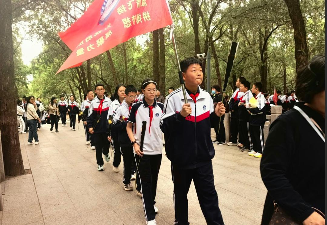 为缅怀革命先烈的不朽功勋,让红色基因代代相传,4月3日下午,山东省济南济微中学组织七、八年级全体师生,前往英雄山烈士陵园,开展“用脚步丈量信仰,青春致敬先烈”主题祭扫活动,以徒步践行初心,以献花寄托哀思,将思政课堂延伸至红色沃土,用青春的赤诚向革命先烈致以最崇高的敬意。