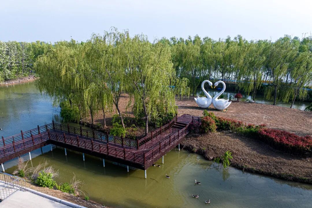 双龙湖内百花争艳,天鹅嬉戏湖面,野趣盎然。运河湿地芳草青青,新荷轻展尖角,诗意绵绵。一城双景,不负春光,逛古城,游湿地,赴一场自然与诗意的约会。