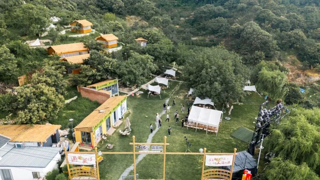 川道・山楂树下露营地有天然的水库与山楂林,是集露营、采摘、亲子互动于一体的轻奢露营综合体。