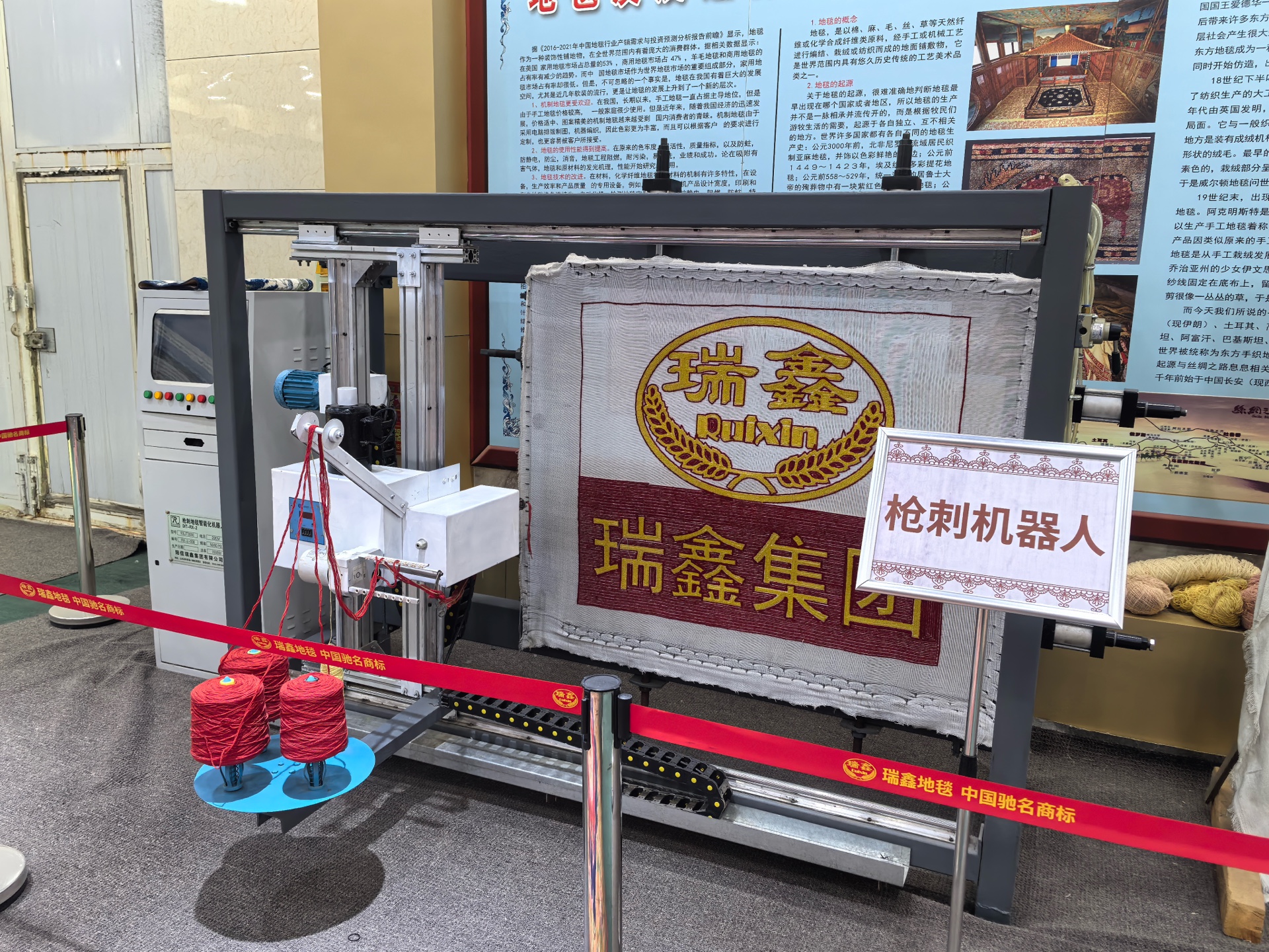 在拓展市场的同时,瑞鑫集团深刻认识到,核心竞争力终究来自技术创新。在瑞鑫集团的车间里,女工们一人就能操控着四台机器人,让它们伸展着“手臂”,分别在各自面前的“画布”上绣出一道道优美的花纹。刘学林介绍,这种由东华大学研发的枪刺地毯智能机器人,已更新至第8代,效率是人工的4—5倍。枪刺地毯全数字智能机器人设定好程序后,工作人员仅需进行图纸上传和换线操作,极大提高了生产效率。即便在数智化转型的大潮中,依然在智能化车间里保留了300多个“银发工匠岗”,既保留传统工艺又传递民生温度。以前一块七八平方米的手工丝地毯,4个工人要织一年多,售价几十万元;现在用智能设备生产的环保地毯,几天就能完成,价格更亲民,市场接受度更高。