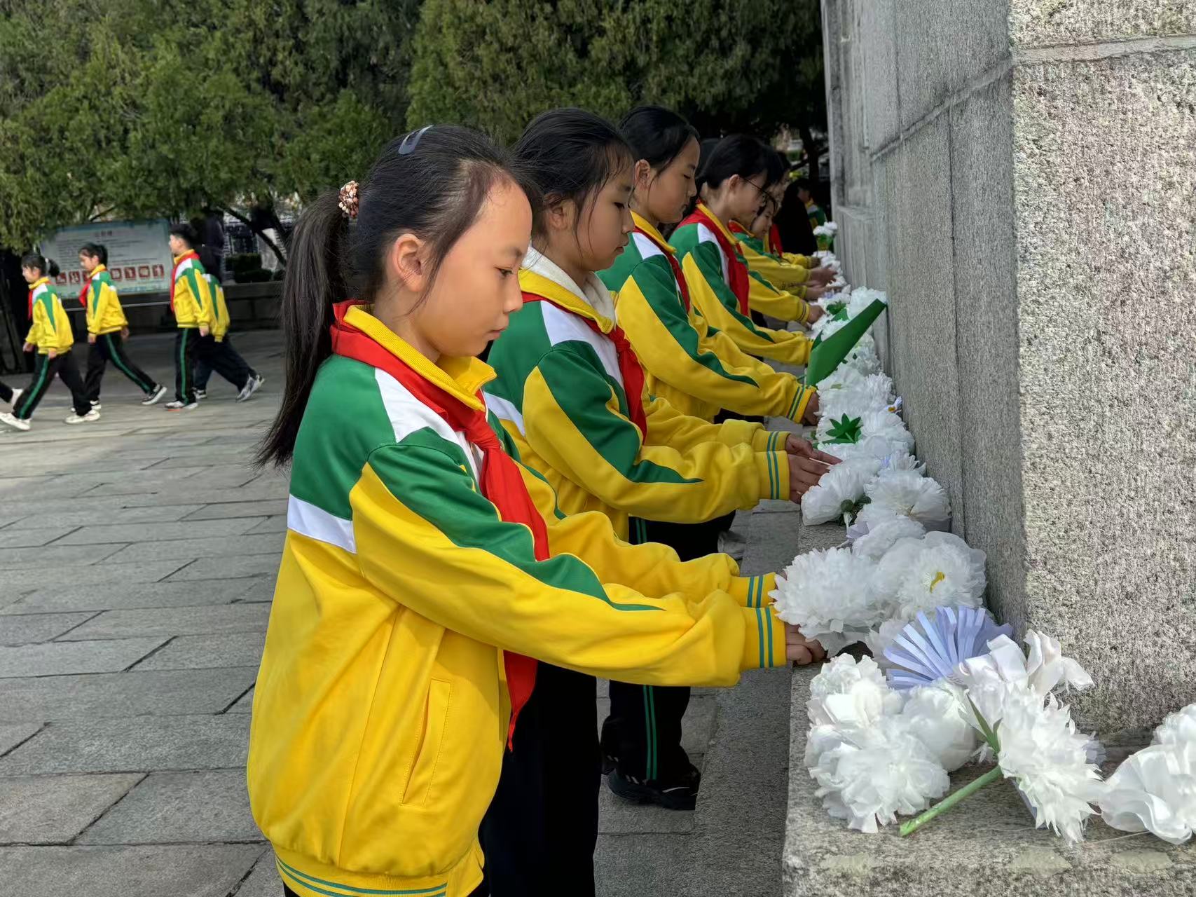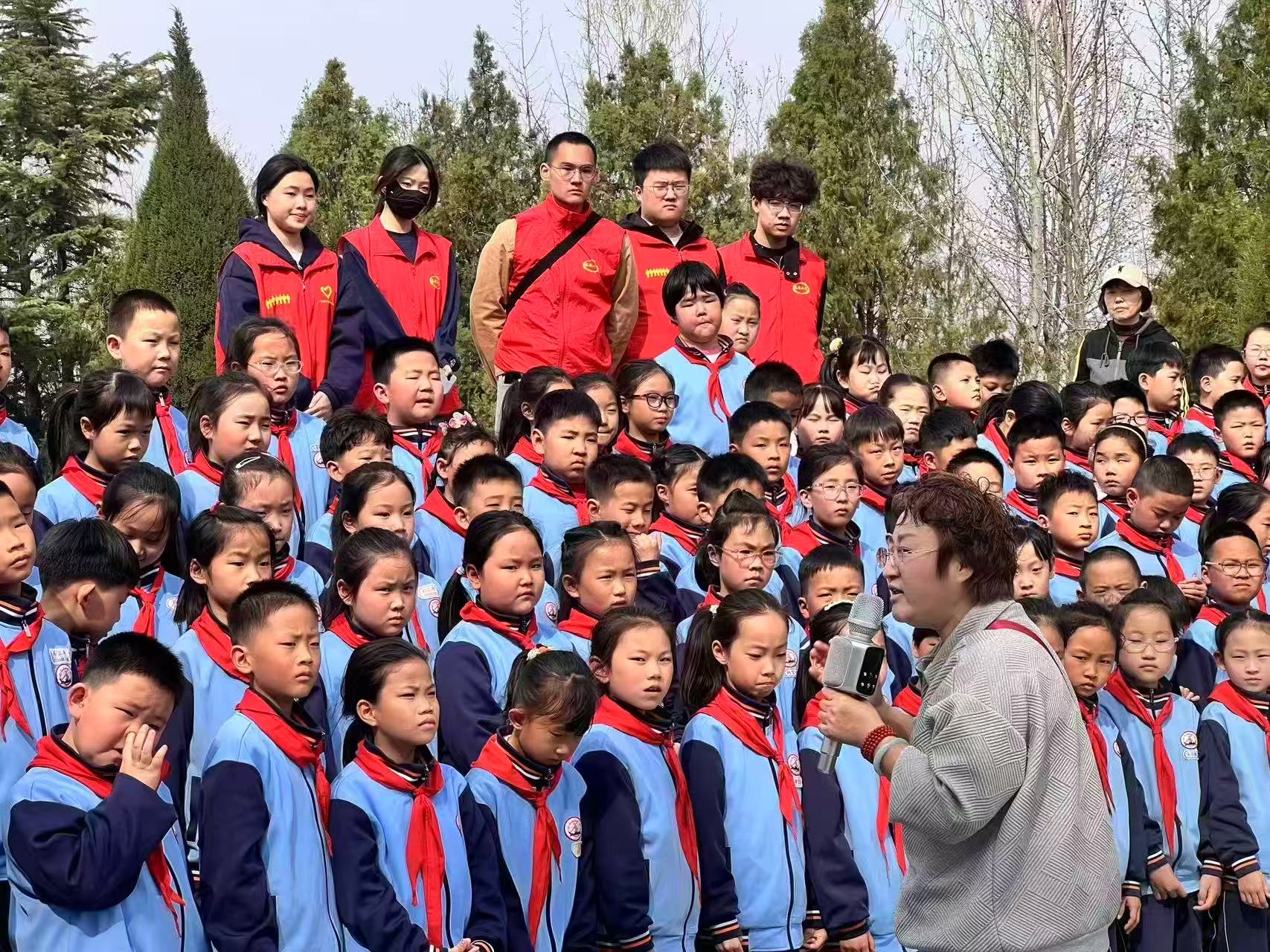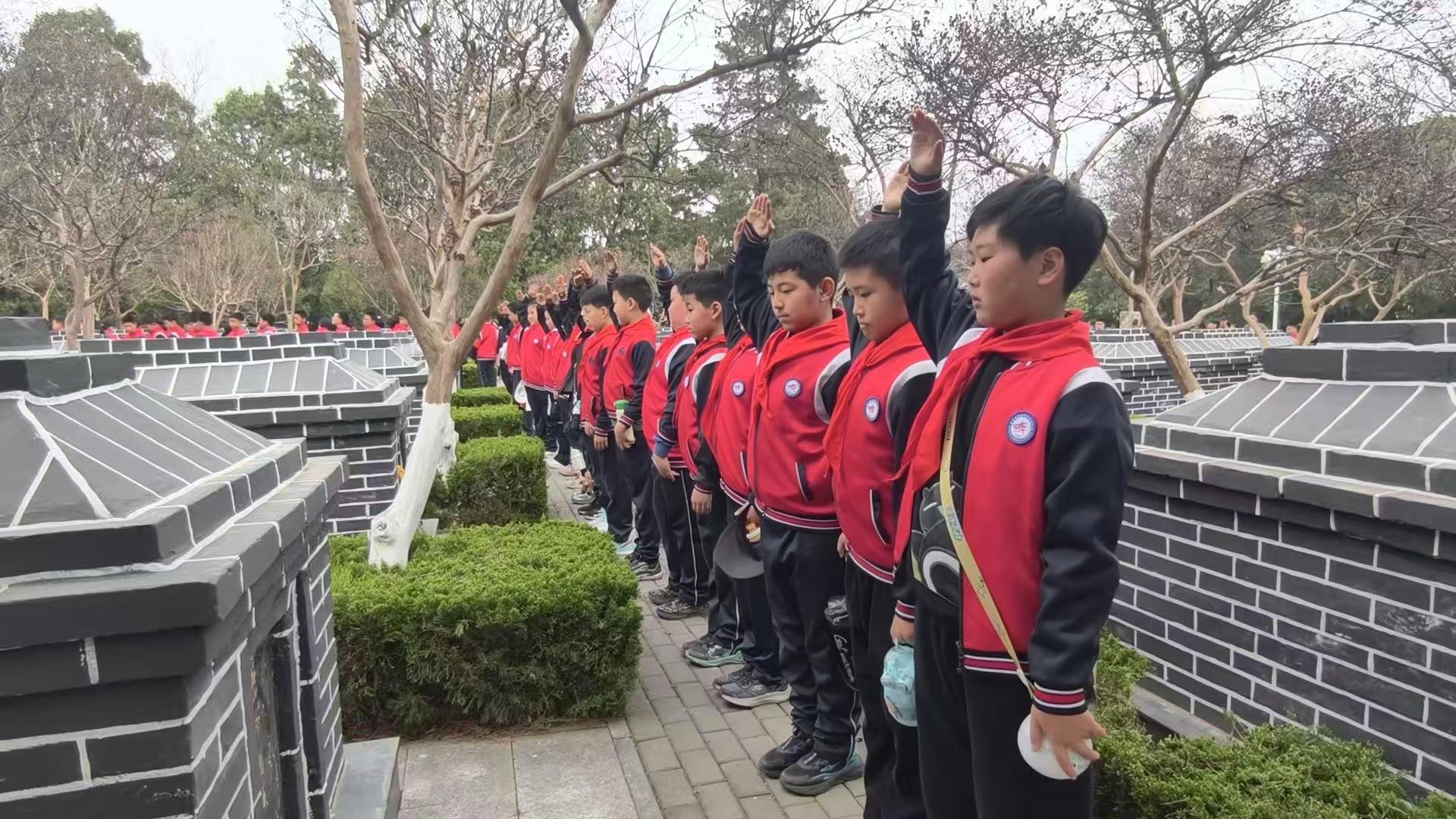 全区各学校积极响应、迅速行动。泰安市实验学校组织广大学生到泰安烈士陵园瞻仰宣誓、祭扫献花。在活动现场,全体师生肃立列队,九百余名少先队员齐声高唱《中国少年先锋队队歌》,铿锵有力的歌声,饱含着对革命先烈的无限崇敬。随后,五十余名少先队员深情献词《清明追思英烈志,薪火相传勇担当》,以少年之声致敬英烈,既是对英烈事迹的深情回望,更是对红色精神的坚定传承。少先队员们还有序前往烈士墓前献花,小宣讲员现场讲述洪涛烈士的英勇事迹,使少年队员们深受教育,深刻感悟今天幸福生活的来之不易,从而坚定让红色基因融入血脉、代代相传的信心和决心。