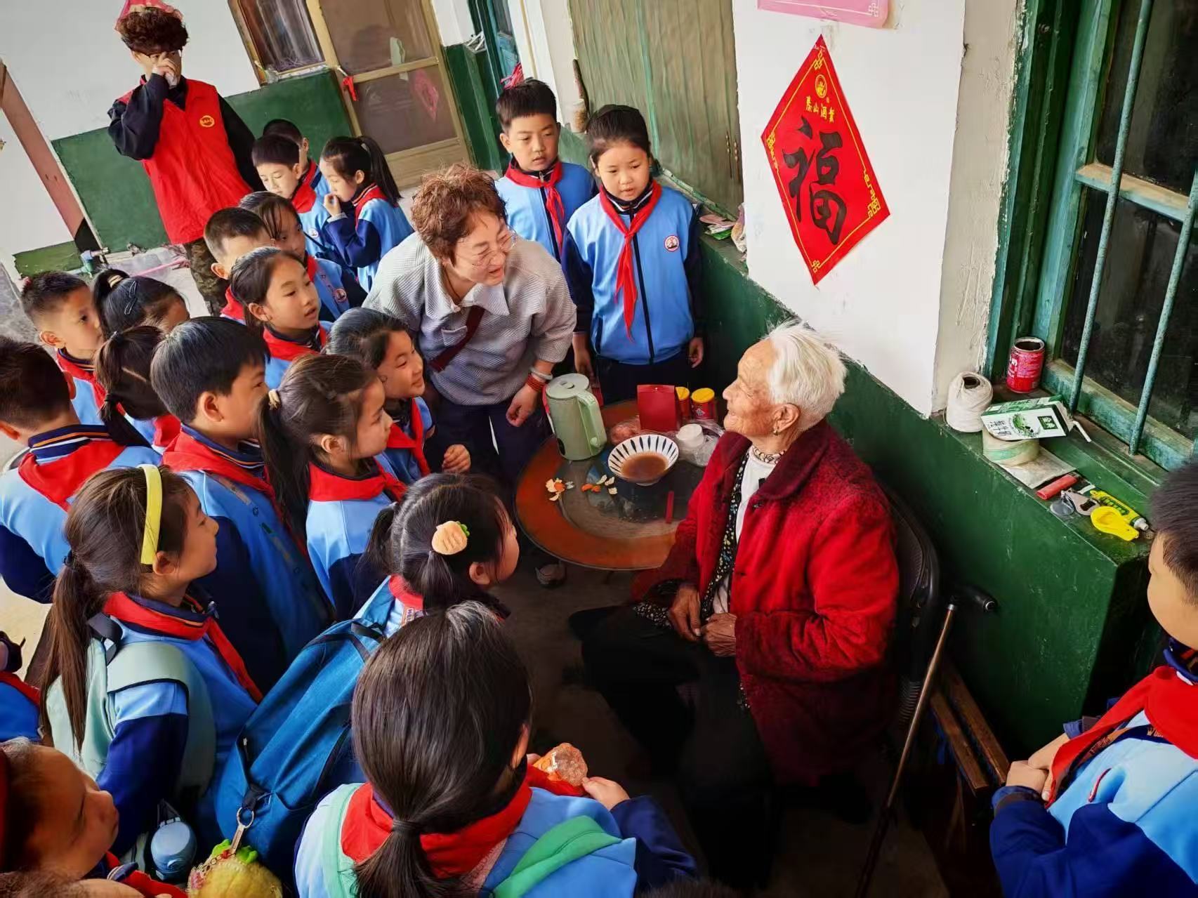 泰前街道迎胜小学开展“寻访红色足迹 传承雷锋精神”活动,带领同学们瞻仰夏张抗日武装起义纪念碑,学习泰西抗日武装起义的历史,了解革命先辈们不畏艰险、浴血奋战的峥嵘岁月,使同学们在红色精神的洗礼中更加坚定了传承红色基因、赓续红色血脉、勇担时代使命的信念与决心;随后,同学们走进村内老人家中,主动拿起扫帚、抹布帮助他们打扫庭院、整理家务,把屋内外收拾得干净整洁。闲暇之余,同学们围坐在老人身边,听他们讲述乡村几十年来的变迁故事,从艰苦岁月到美好生活,老人们脸上洋溢起温暖的笑容,也让同学们深切感受到人民的幸福生活与祖国的发展息息相关。