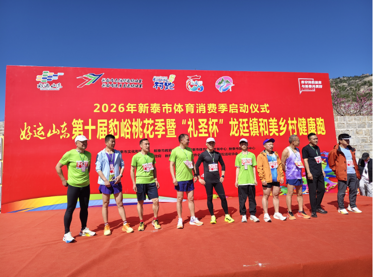 春风十里桃花笑,健步如飞入画来。4月4日,在新泰市龙廷镇上豹峪村圣水山脚下,千亩桃花迎风绽放,粉霞漫天。与往年不同的是,今年的桃花季多了一道跃动的风景线——随着一声发令枪响,数百名跑步爱好者如离弦之箭冲进花海环山路,第十届豹峪桃花季暨2026“礼圣杯”龙廷镇和美乡村健康跑正式拉开帷幕。一朵桃花与一场赛事相遇,让这个小山村在春日里“跑”出了产业融合的加速度。