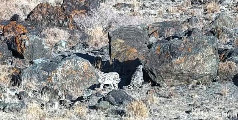 奇台县北塔山区域5只雪豹罕见同框