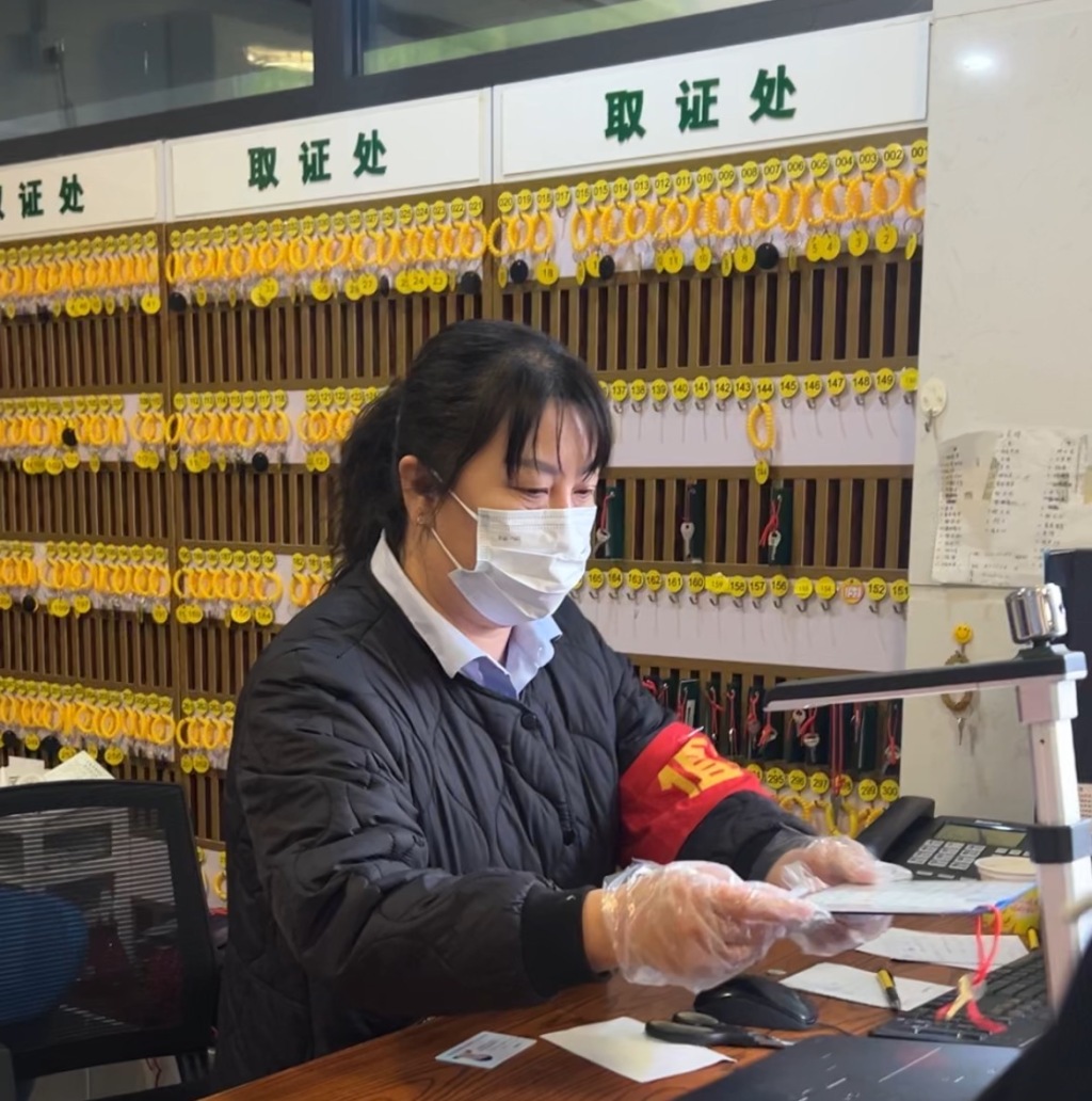 一天下来,光是经她手办理存取手续的,就“2000次不止”。那意味着她要重复2000次“对名字、收证件、递钥匙”的动作。“这段时间一天有二三十位家属把逝者骨灰盒迁走,这个流程比较麻烦,耗时比较长,为了不耽误其他家属将骨灰盒搬到室外,同事会协助办理存放工作。”